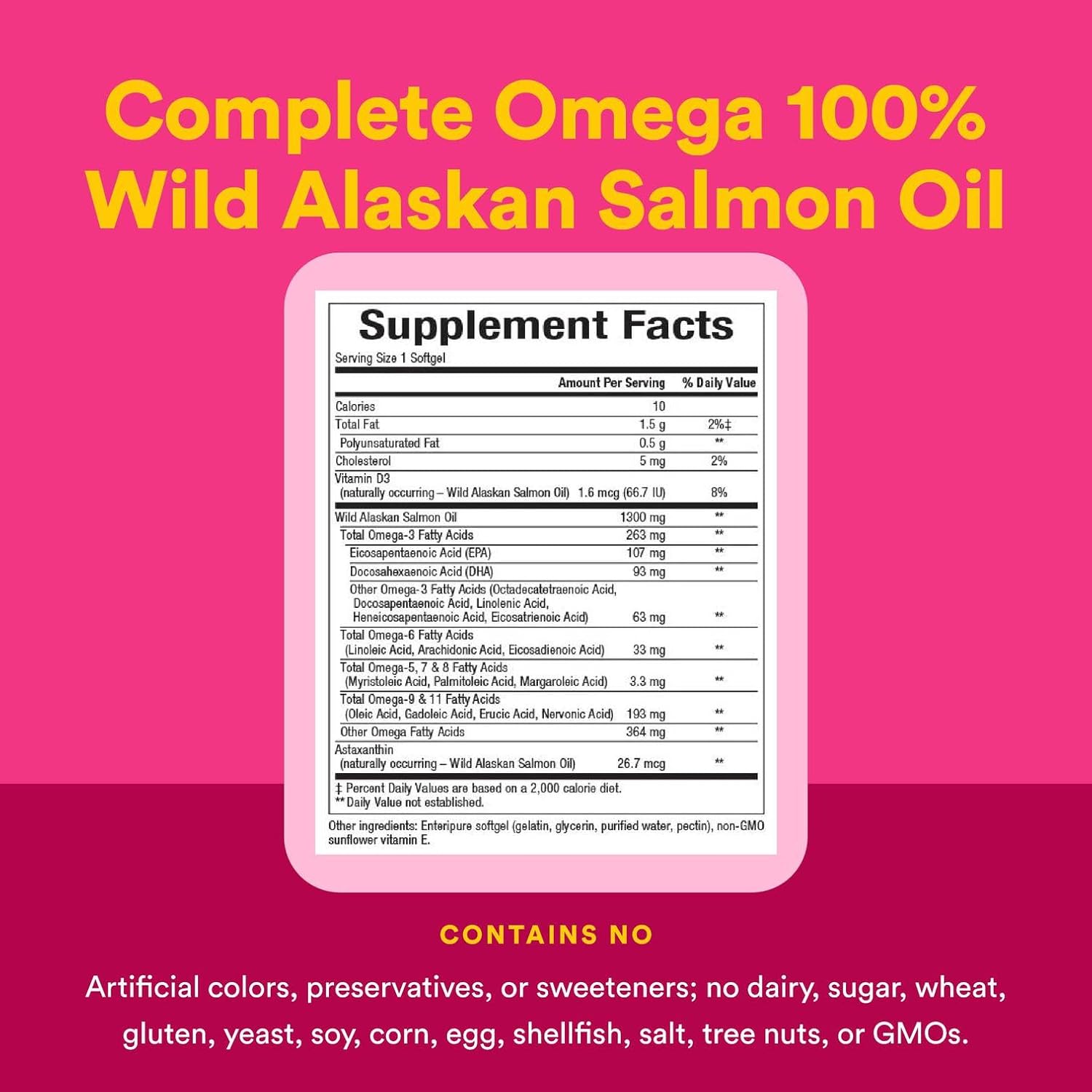 Complete Omega by Natural Factors, Wild Alaskan Salmon Oil, Supports Heart and Brain Health with Omega-3 DHA and EPA, 180 softgels (180 servings)