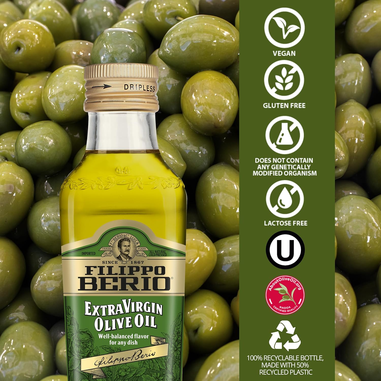 - 150 YEARS OF DEDICATION: Filippo Berio dedicated his life to crafting the most exquisite olive oil and each bottle bears his signature, a guarantee that it lives up to his very high standards.
