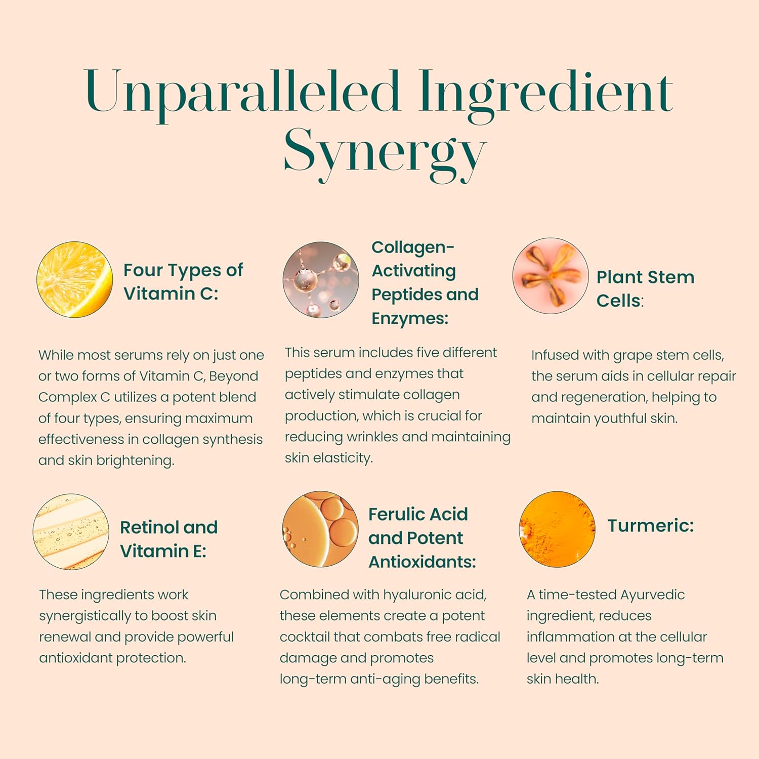 - 🍊 Why Choose Beyond Complex C?: Hylunia's serum goes beyond the ordinary by incorporating four types of Vitamin C, collagen-activating peptides, and plant stem cells for a holistic skincare experience. In contrast, most serums use only one or two types of Vitamin C, limiting their effectiveness. Beyond Complex C's high-potency antioxidants and retinol deliver comprehensive benefits, ensuring your skin receives the ultimate care and rejuvenation it deserves.