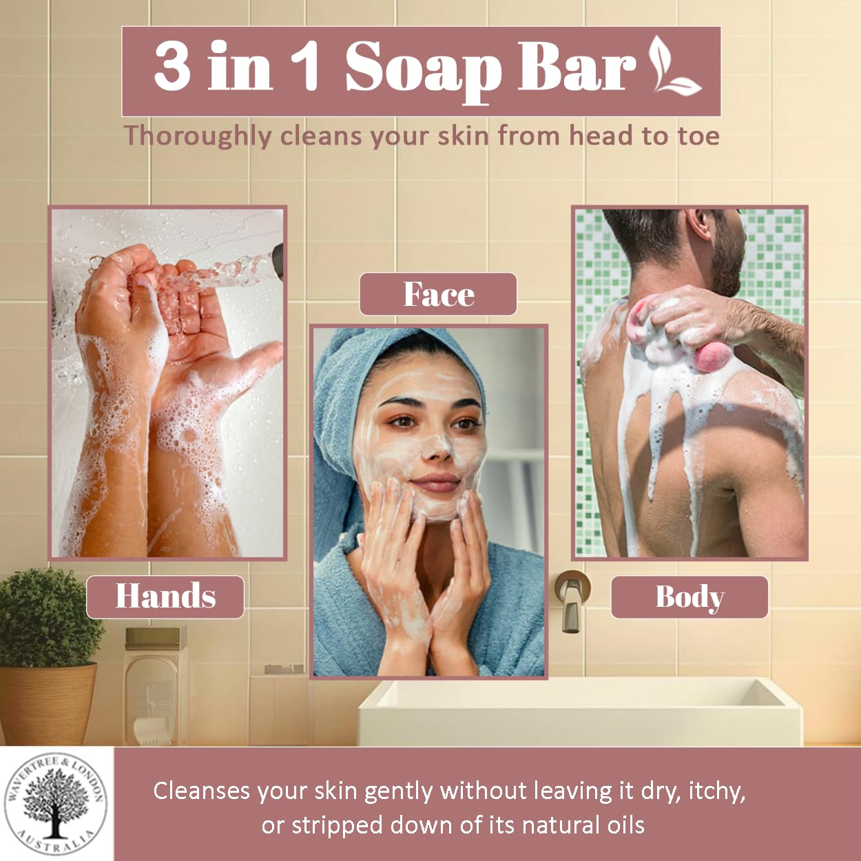 - 🌿 Natural Ingredients | Non-Toxic Bar Soap ➤ Our hypoallergenic bar soaps are made with the finest natural native Australian and globally sourced ingredients, including sustainable plant oils—ensuring a chemical-free and eco-friendly bathing experience. These non-toxic natural soap bars contain NO harsh chemicals, NO parabens, NO sodium lauryl sulfates, NO HEDP, and NO EDTA.