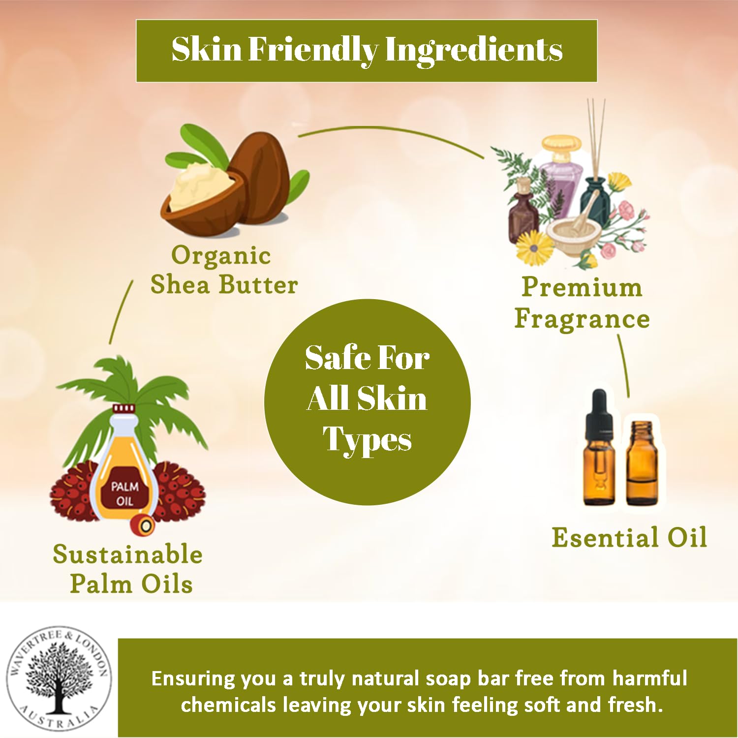 - 📋 Ingredients: Sustainable Palm oil, Palm Kernel Oil, Aqua (water), Certified Organic Shea Butter, Vegetable Glycerin, Essential Oils and/or Fragrance, Sodium Gluconate (natural sugar-based preservative), Sodium Chloride, Titanium Dioxide (food grade)