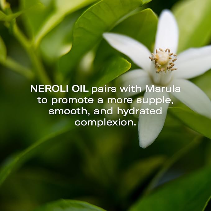 - Ingredient Power: Our exceptional Marula Oil — rich in omegas, antioxidants, and Vitamins C and E — absorbs quickly without clogging pores and helps create a lipid barrier to prevent transepidermal water loss. Derived from orange blossoms of the bitter orange tree, our Neroli Oil pairs with Marula to promote a more supple, smooth, and hydrated complexion.