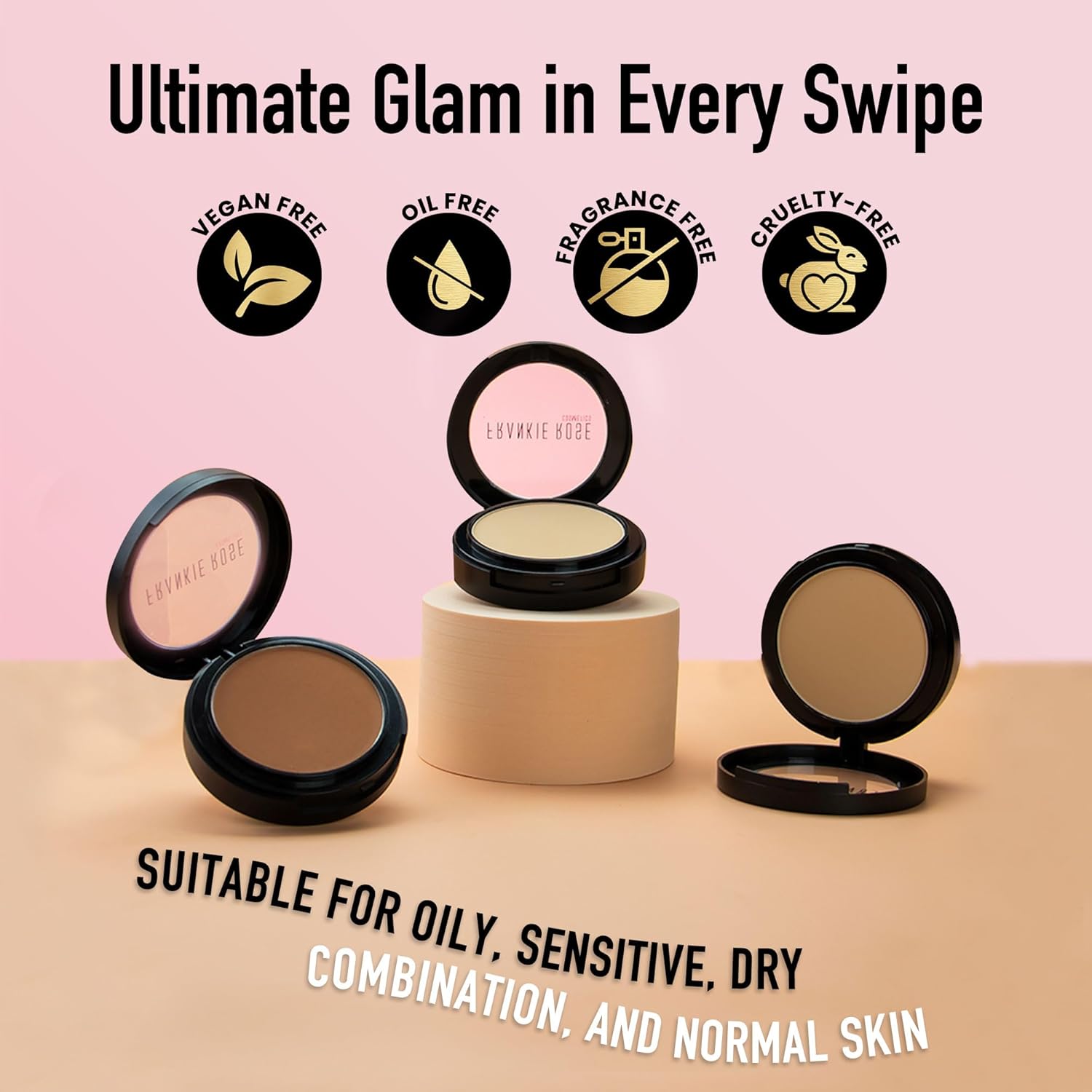 - SATINY PERFECTION: The lightweight texture of our pressed powder allows it to glide on effortlessly and makes you feel comfortable in your own skin. Whether you use it alone or in combination with Frankie Rose Foundation, there won’t be any greasy, cakey, or heavy feeling, just pure satiny perfection.