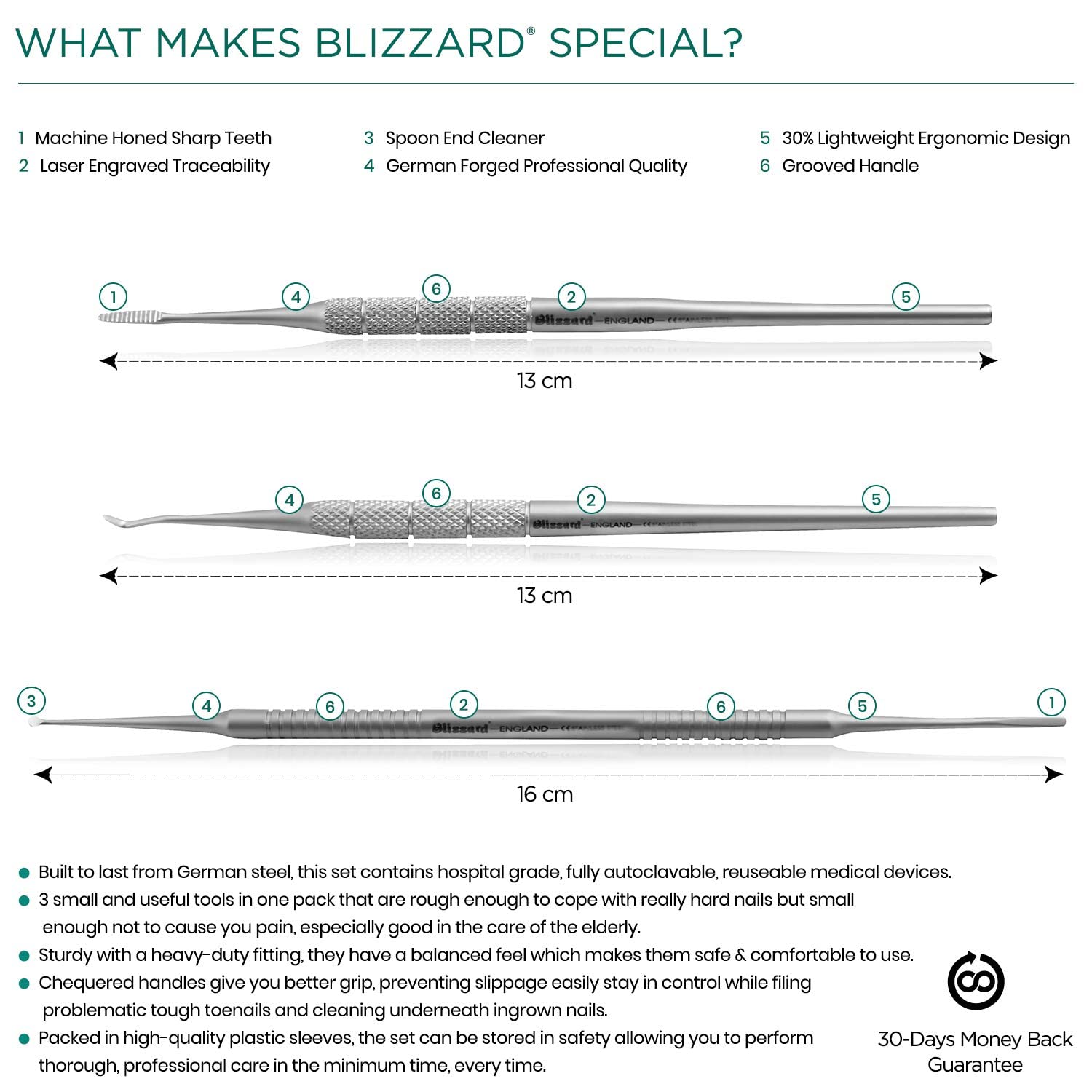 - Satisfaction guarantee: Our podiatry tools are backed by our manufacturer 30-day money back guarantee