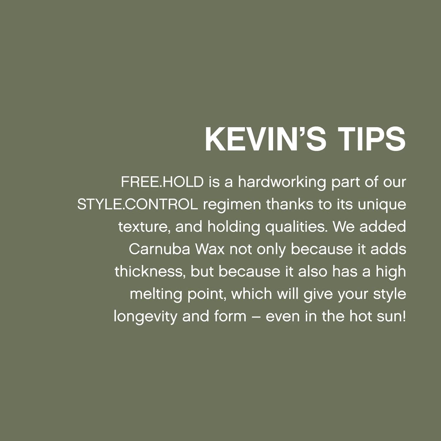 - Medium Hold Styling Paste: FREE.HOLD is a styling cream for all hair types, offering flexible medium hold with a natural shine—even in hot conditions