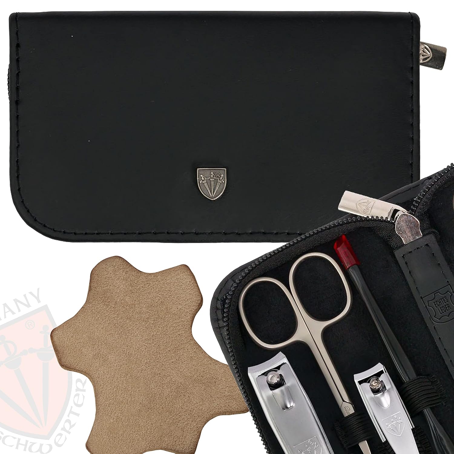 3 Swords Germany – brand quality 8 piece manicure pedicure grooming kit set for professional nail care with genuine leather case black - Made in Germany