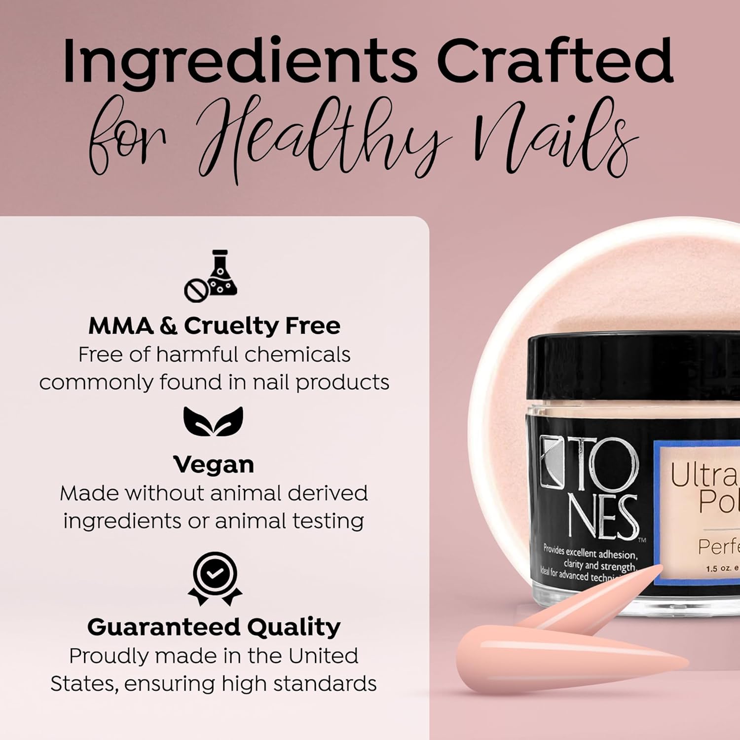 Tones Pro Acrylic Nail Powder, Perfect Pink (Soft Pastel Pink), (1.5 Fl Oz) - Long-Lasting & Non-Yellowing Polymer for Salon Quality Nail Extensions & 3D Art