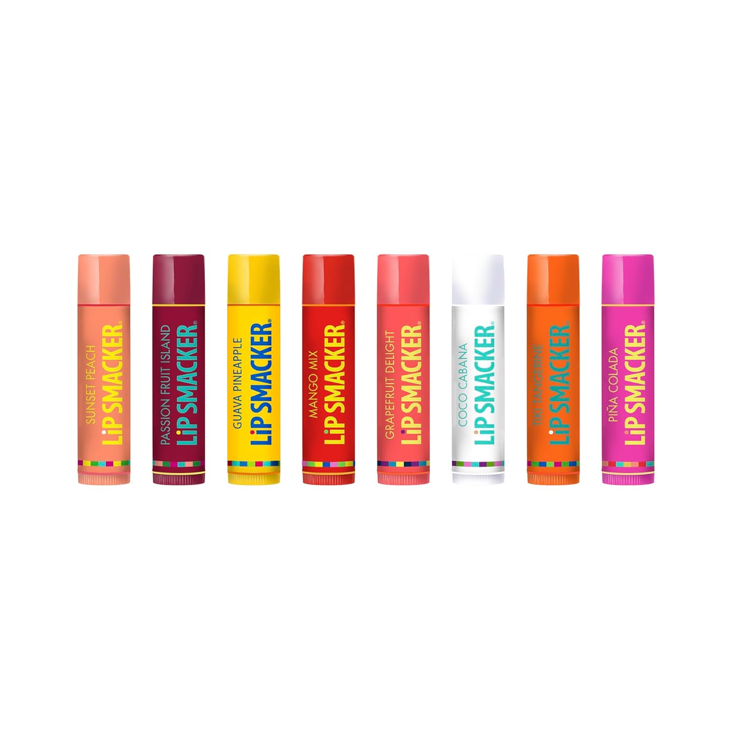 Lip Smacker Flavored Lip Balm Tropic Fever 8 Count (Pack of 1), Passion Fruit, Peach, Breezey-Teazey, Pina Colada, Grapefruit, Coca Cabana, Tangerine, Mango, Clear