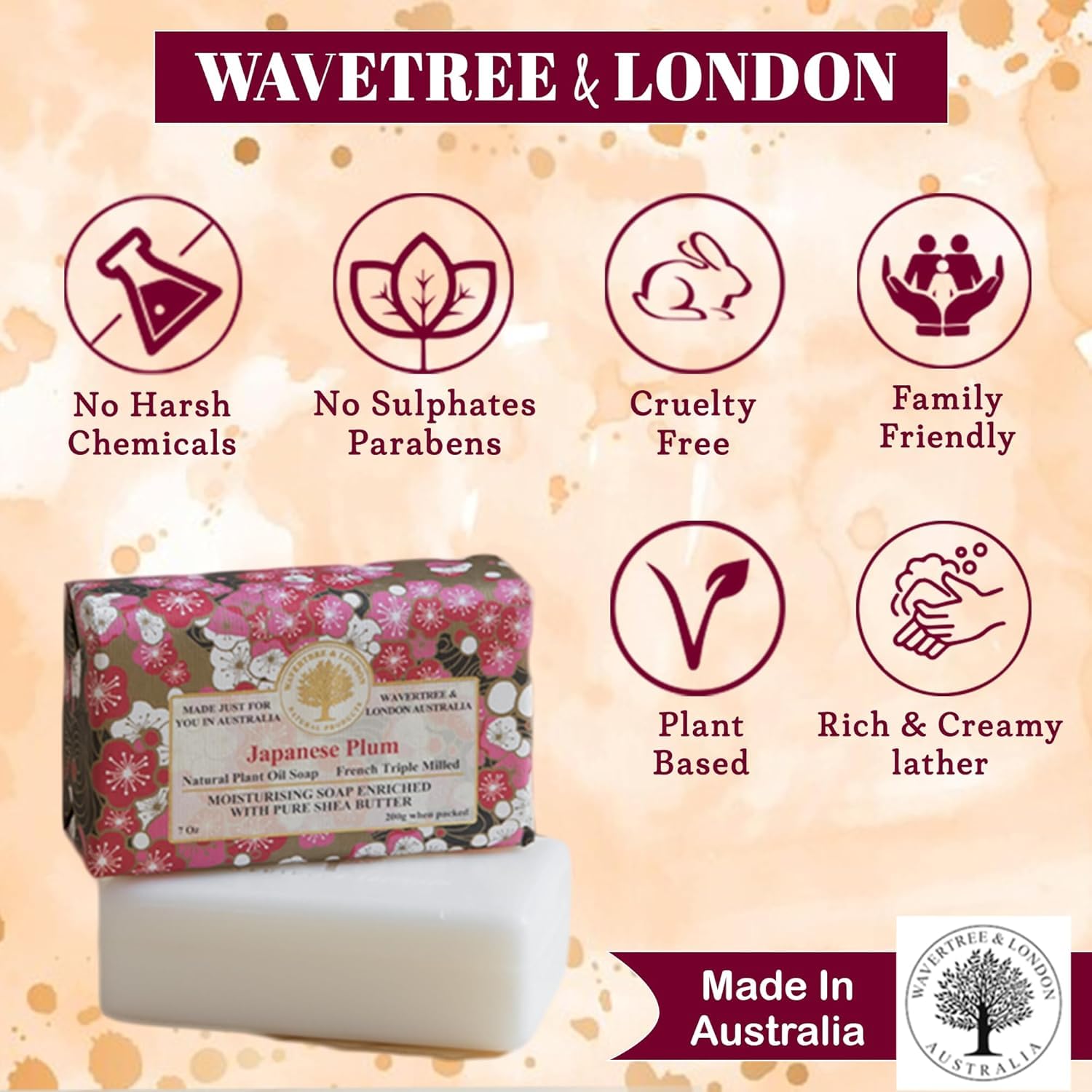 Wavertree & London Japanese Plum Scented Natural Soap Bar, 7oz Moisturizing French Triple Milled Soap Bar for Women & Men
