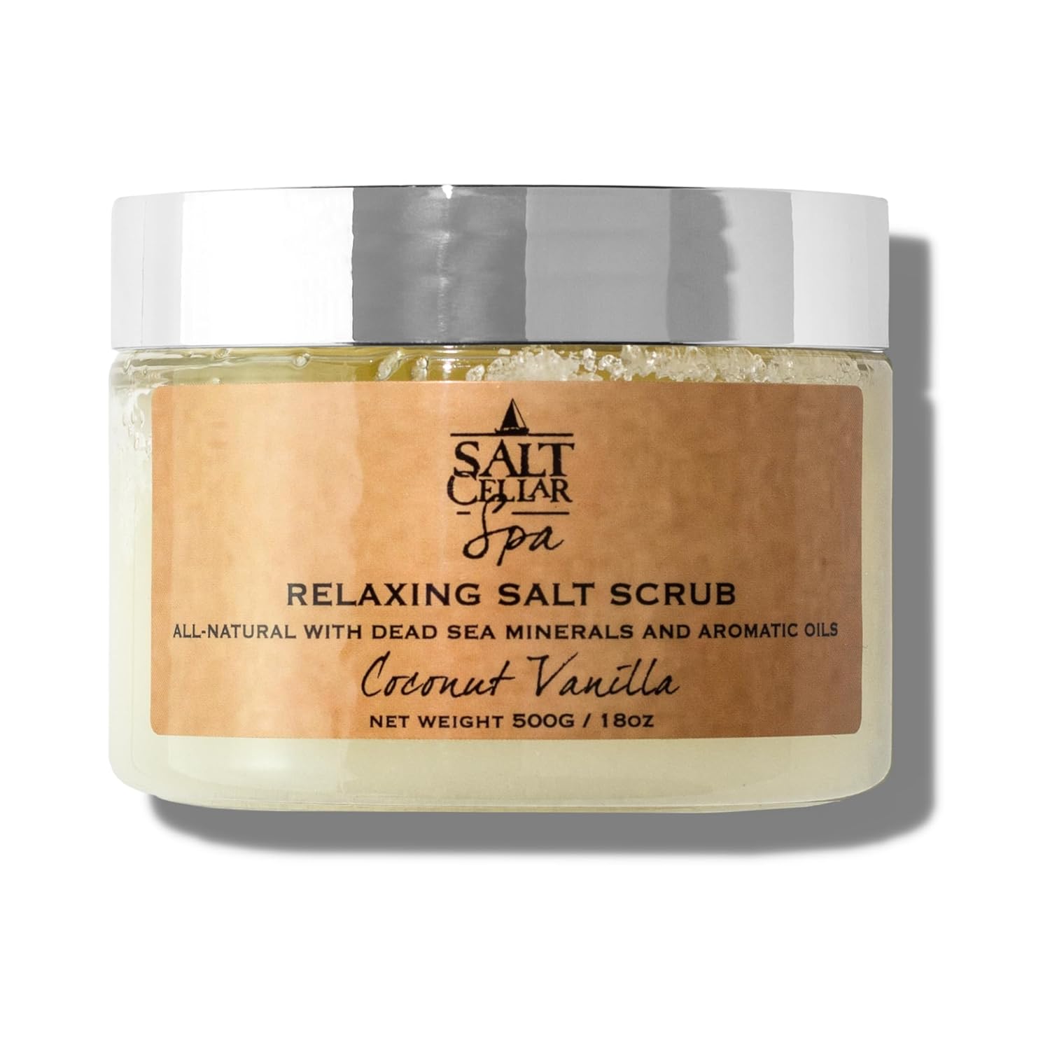 Salt Cellar Spa All-Natural Dead Sea Salt Scrub - Refresh with Coconut Vanilla - Energize, Revive, and Rejuvenate your Skin - Made in Israel, Cruelty-Free, 18 oz.