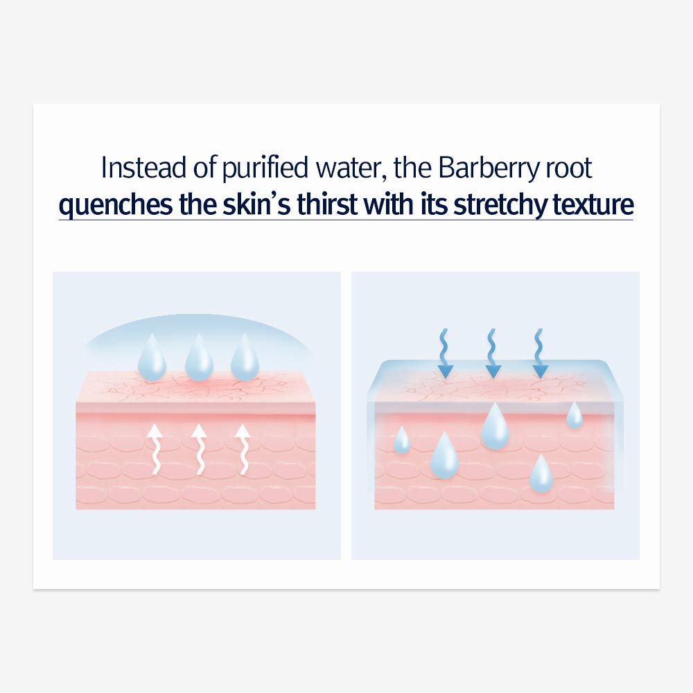 - A POWERFUL MOISTURE BARRIER, RAPIDLY SOOTHING - Instead of purified water, the stretch texture of Barburry root can replenish nutrition and moisture under the moisture barrier, between cells, maintaining the skin moisturized. Also, its various alkaloids immediately alleviated irritated skin.