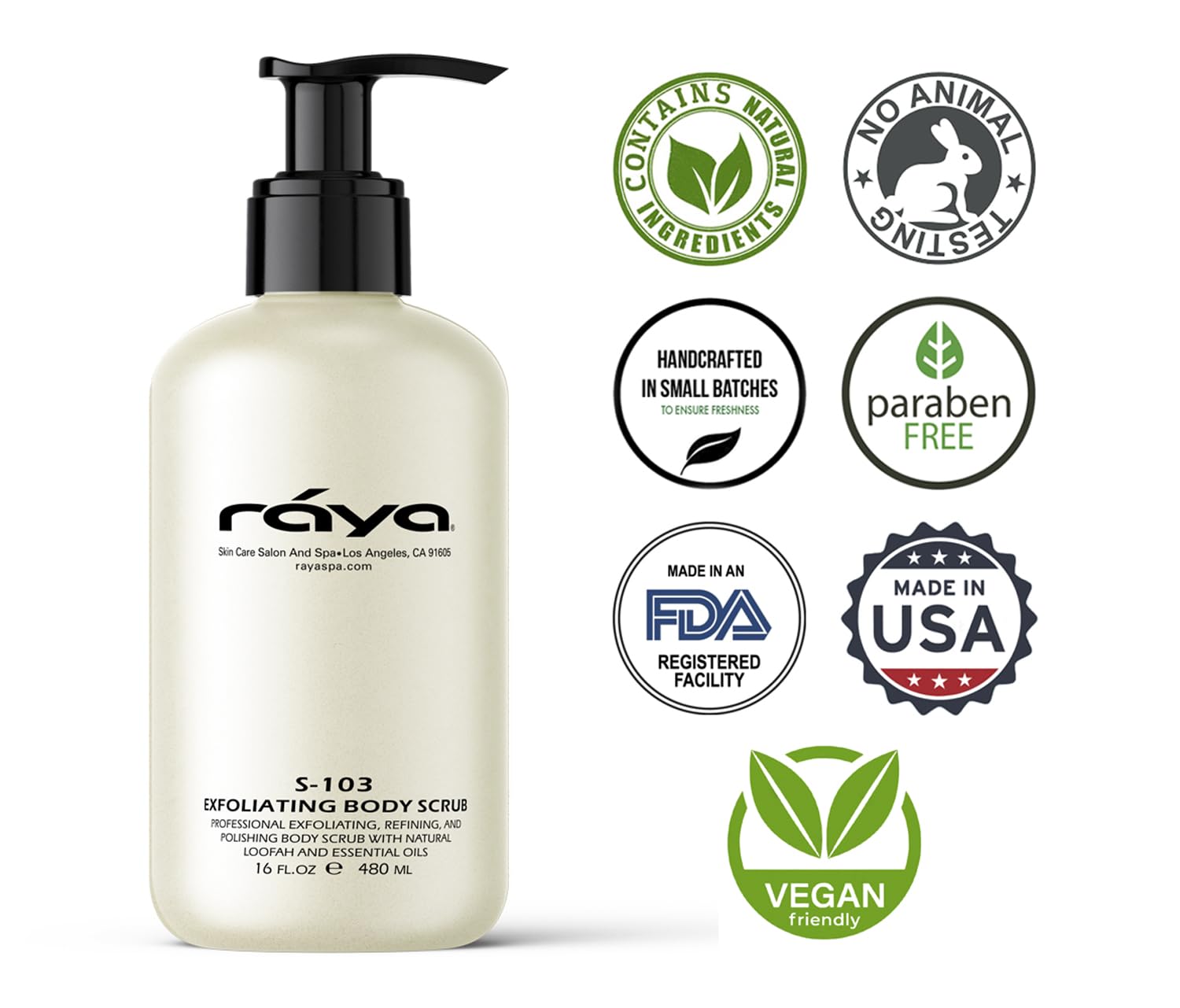 RAYA Exfoliating Body Scrub 16 oz (S-103) | Exfoliating, Refining, and Polishing Body Scrub | Made with Natural Loofah and Essential Oils | Relieves Ingrown Hairs