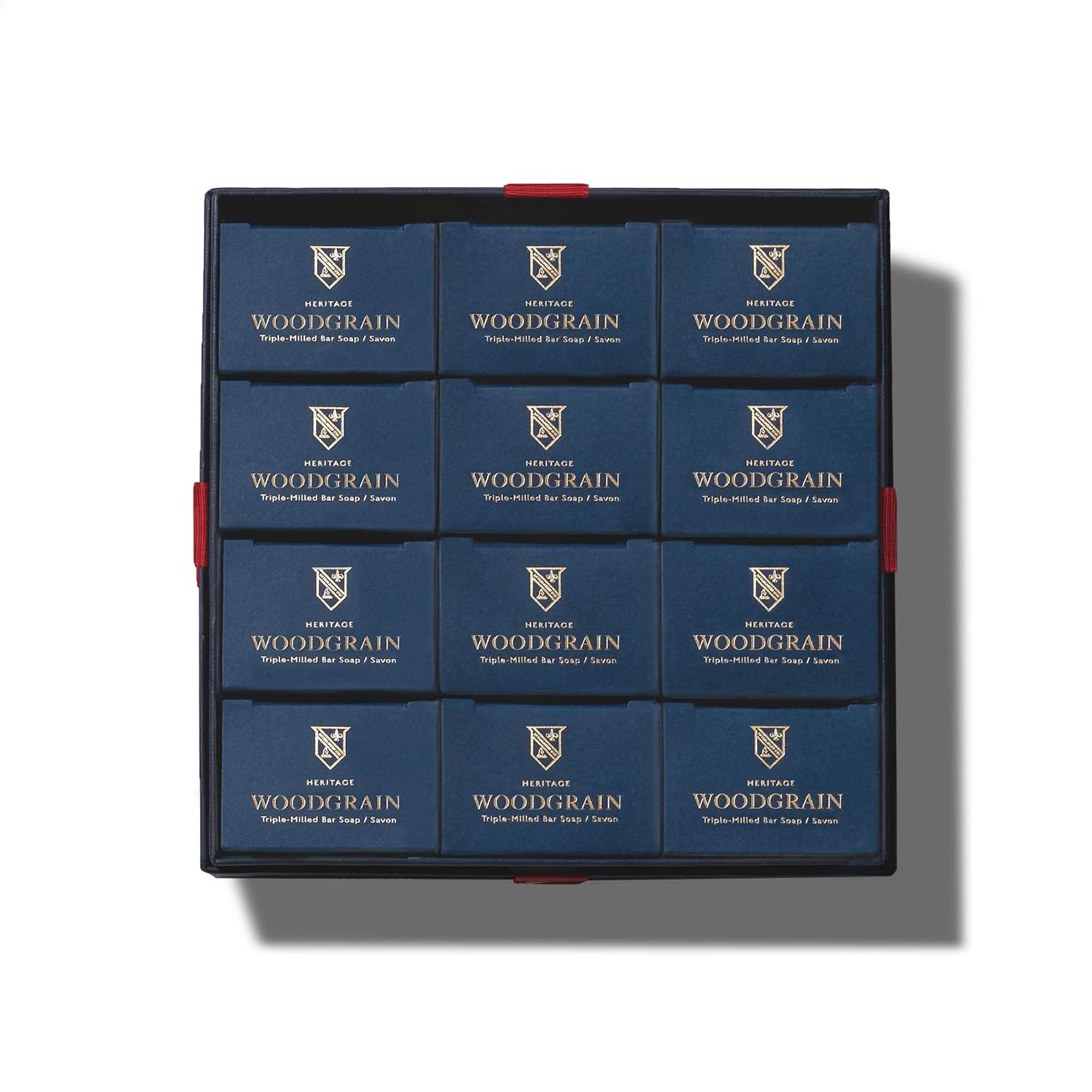 Caswell-Massey Woodgrain Sandalwood Natural Bar Soap Gift Set - Moisturizing Triple-Milled Body Soap for Men - Plant-Based with Essential Oils for Soft Skin, Cruelty-Free, USA Made, 12 Bars x 5.8 oz