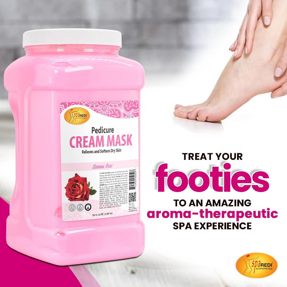 SPA REDI - Body and Foot Cream Mask, Sensual Rose, 128 Oz - Pedicure Massage for Tired Feet and Body, Hydrating, Fresh Skin - Infused with Hyaluronic Acid, Amino Acids, Panthenol, Comfrey Extract