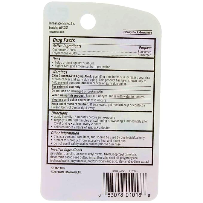 - SPF 15 Sunscreen Water Resistant (80 Minutes)