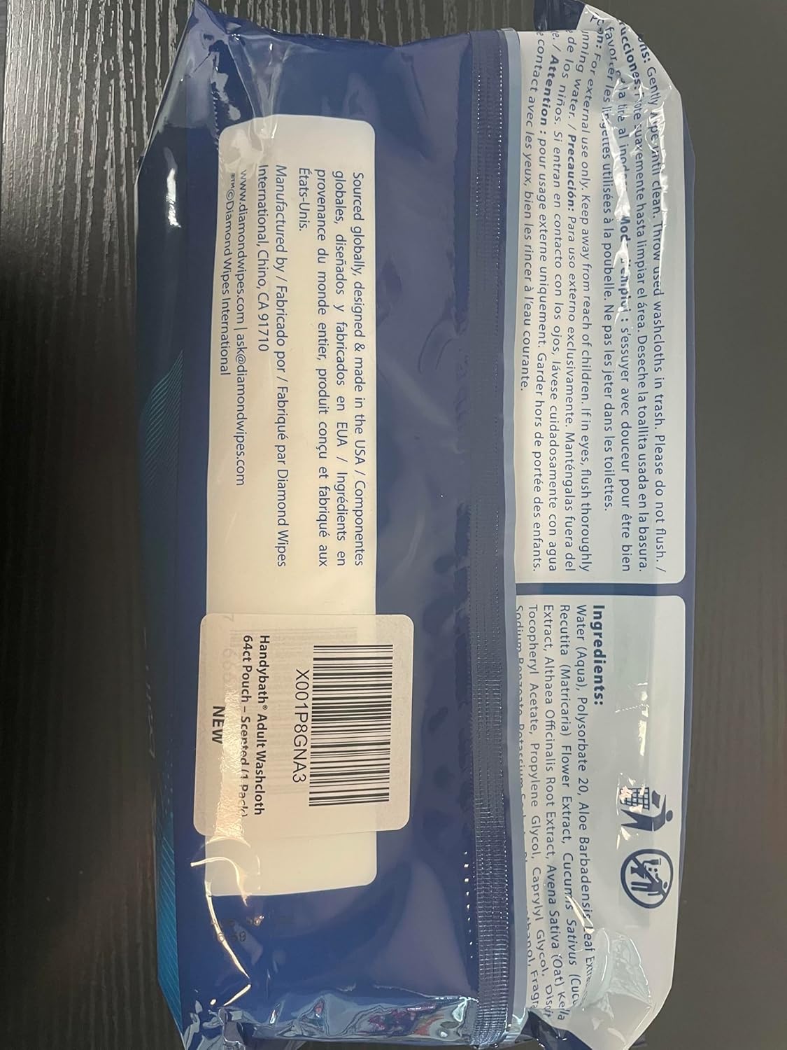 Handybath Adult Washcloths Scented, Extra Large Cleaning Wipes with Aloe Vera & Chamomile, 64 Wipes - Senior Care, Outdoor Activities, Travel Essentials