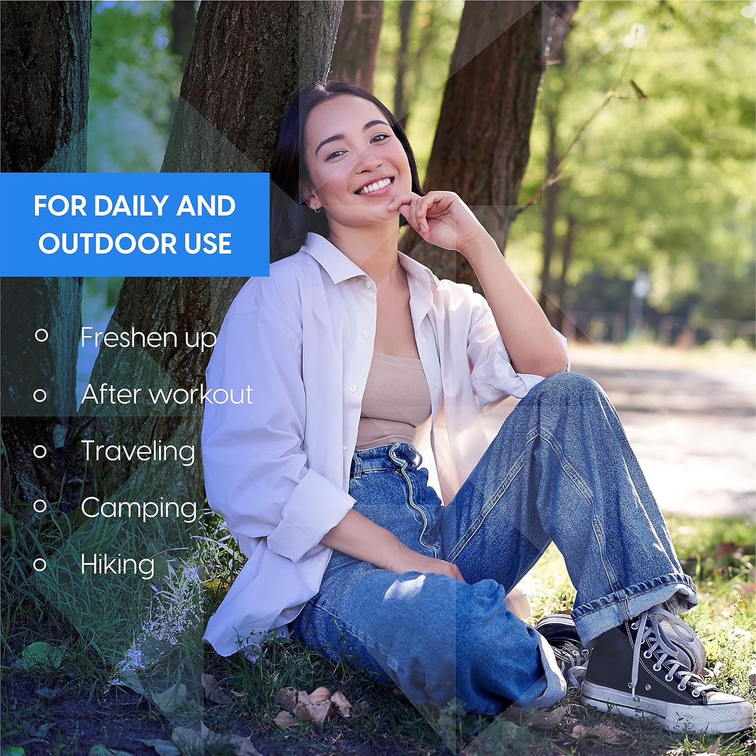 - Conveniently Cleans - Get instant freshness with our bathing wipes for adults rinse free formula. Perfect for on-the-go hygiene wipes, camping wet wipes for adults, travel, or quick post-workout refreshes.