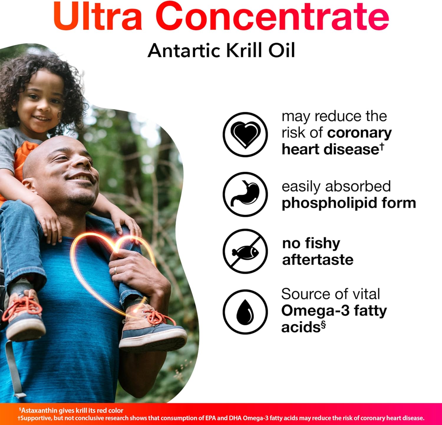 - MORE OMEGA 3: One 750mg MegaRed Ultra Concentrated softgel equals to two 500mg standard krill oil softgels1