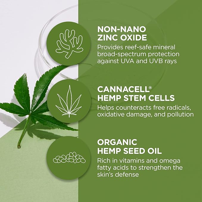 - SPF 30 MINERAL SUNSCREEN: Discover your pure, natural beauty with this hemp stem cell sunscreen for face which offers mineral-based SPF 30 sun protection from harmful UVA/UVB rays. Suitable for all skin types