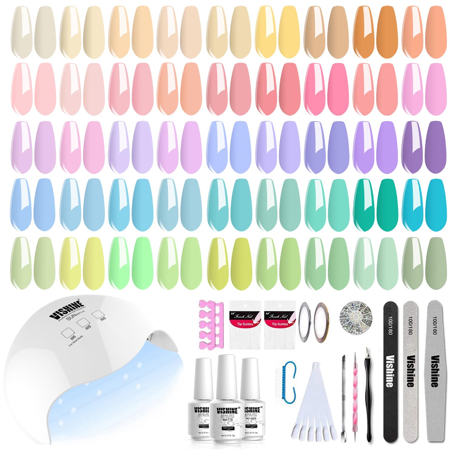 Vishine 48 PCS Pastel Gel Nail Polish Kit with UV Light Base and Matte Glossy Top Coat Nail Gel Polish Soak off Manicure Accessory Tools Suitable for All Seasons