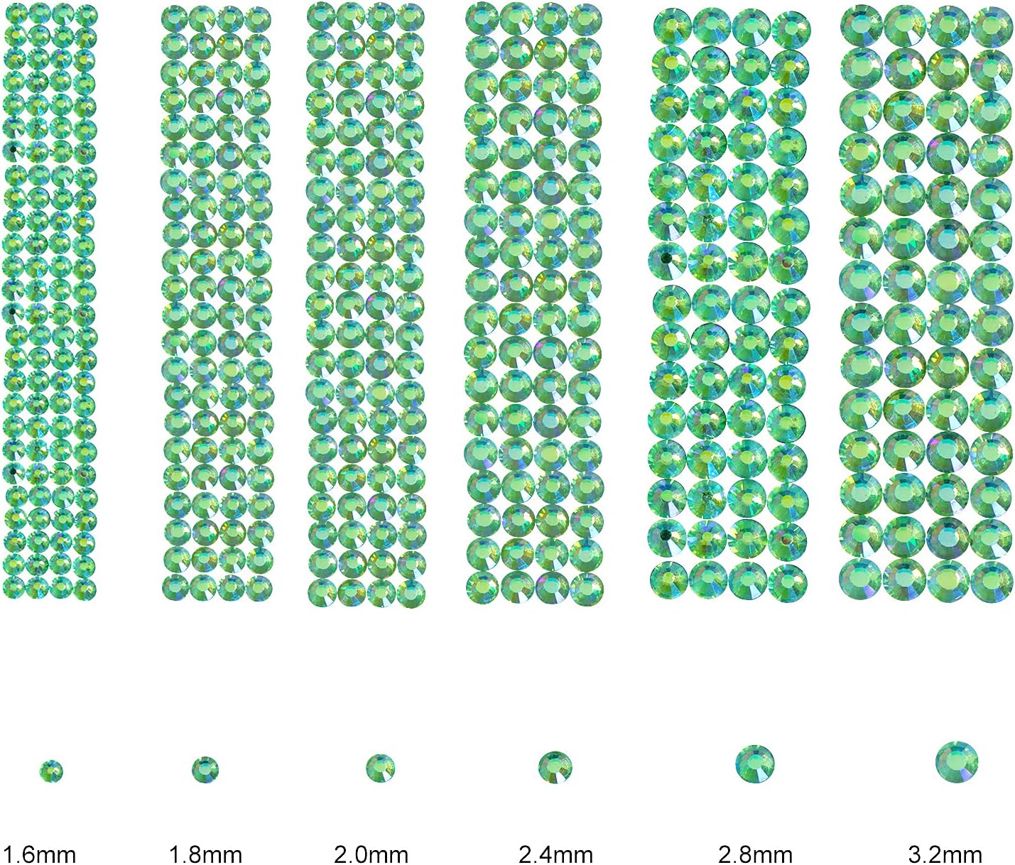 3456pcs Flatback Rhinestones Glass Charms Diamantes Gems Stones for Nail Art 6 Size ss4~ss12 Light Green AB
