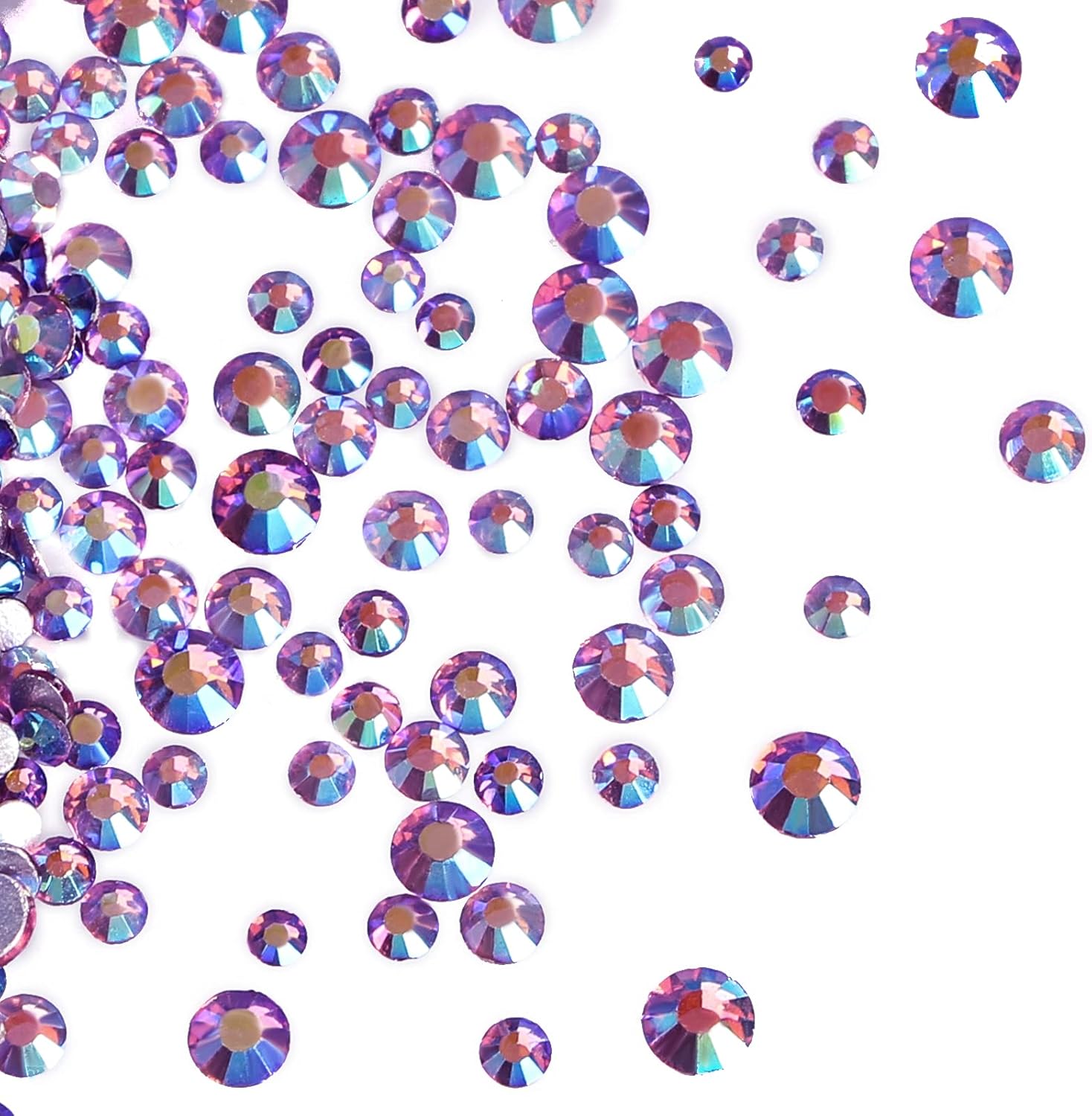 3456pcs Flatback Rhinestones Glass Charms Diamantes Gems Stones for Nail Art 6 Size ss4~ss12 Light Purple AB