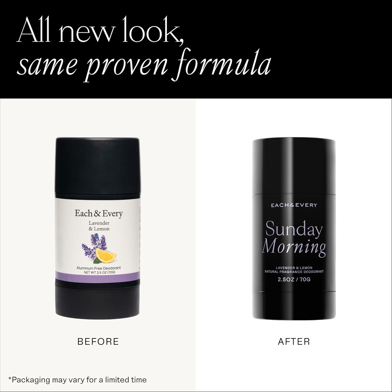 Each & Every Aluminum Free Deodorant for Women & Men - All Natural Deodorant for Sensitive Skin, EWG Verified - Clean, Baking Soda-Free, Plant-Based Fragrance, Lavender & Lemon, 2.5oz