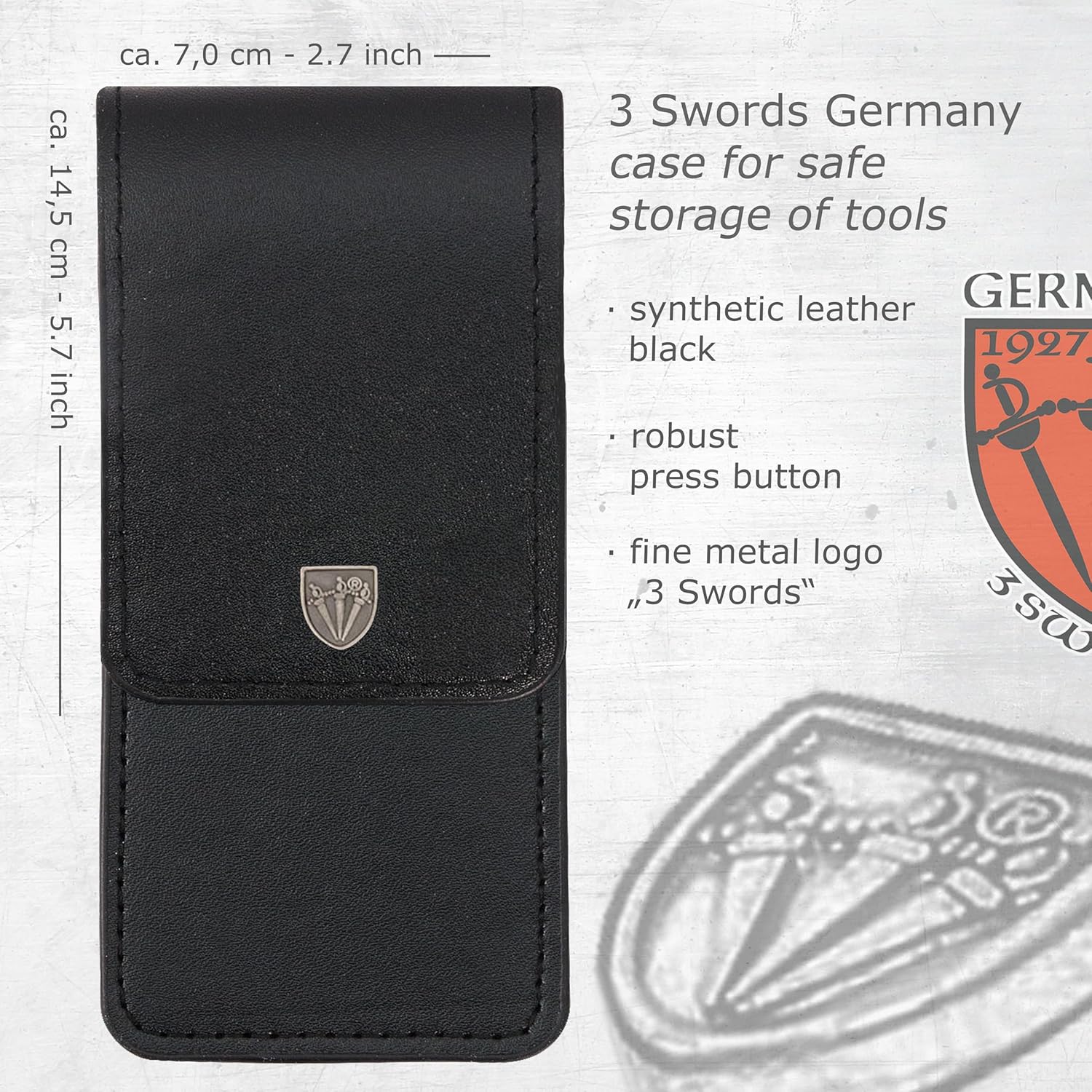 - TOOLS: Made from stainless steel, specially hardened and sharpened, lenght ca. 4,7 inch. The tools came into an attractive synthetic leather case by 3 Swords Germany since 1927.
