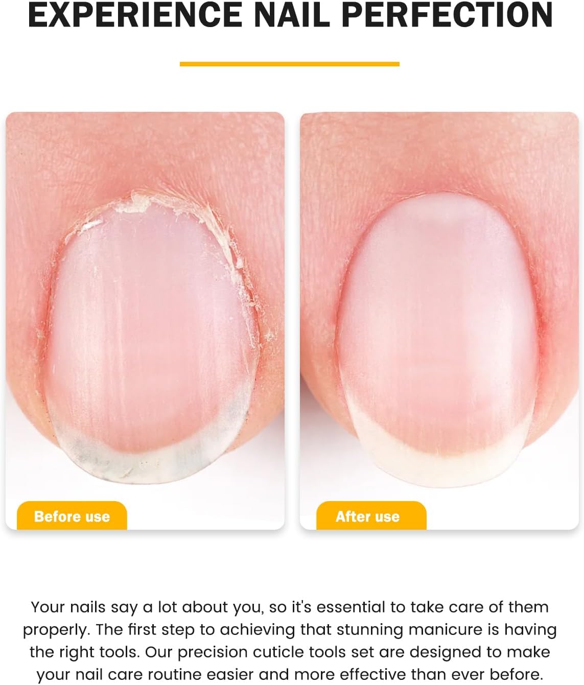 - COMPLETE CUTICLE TOOLS - Take your nail game to the next level with this comprehensive cuticle trimmer set. It includes cuticle cutters, nail cuticle pusher, and cuticle scraper. Whether you're a nail art pro, a learner, or simply looking for a DIY solution, this multi-purpose manicure set is perfect for nail enthusiasts everywhere.