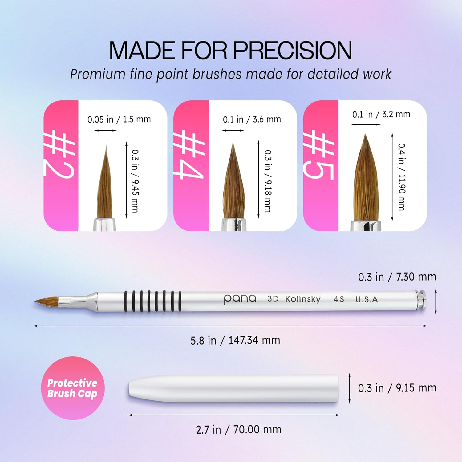 - [Measurements] Brush Tip: 0.3 inches (9.18 mm) X 0.1 inches (3.6 mm) | Cap: 2.7 inches (70.00 mm) x 0.3 inches (9.15 mm) | Overall length: 5.8 inches (147.34 mm)