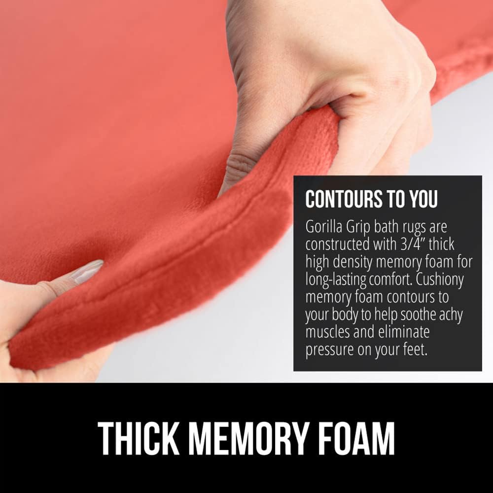 GORILLA GRIP Memory Foam Bath Mat, Soft Absorbent Velvet Bathroom Mats, Durable Dots on Underside, Machine Washable Bathmat, Carpet Rug Room Decor for Shower Tub Floor RV, 30x20 Rugs, Coral
