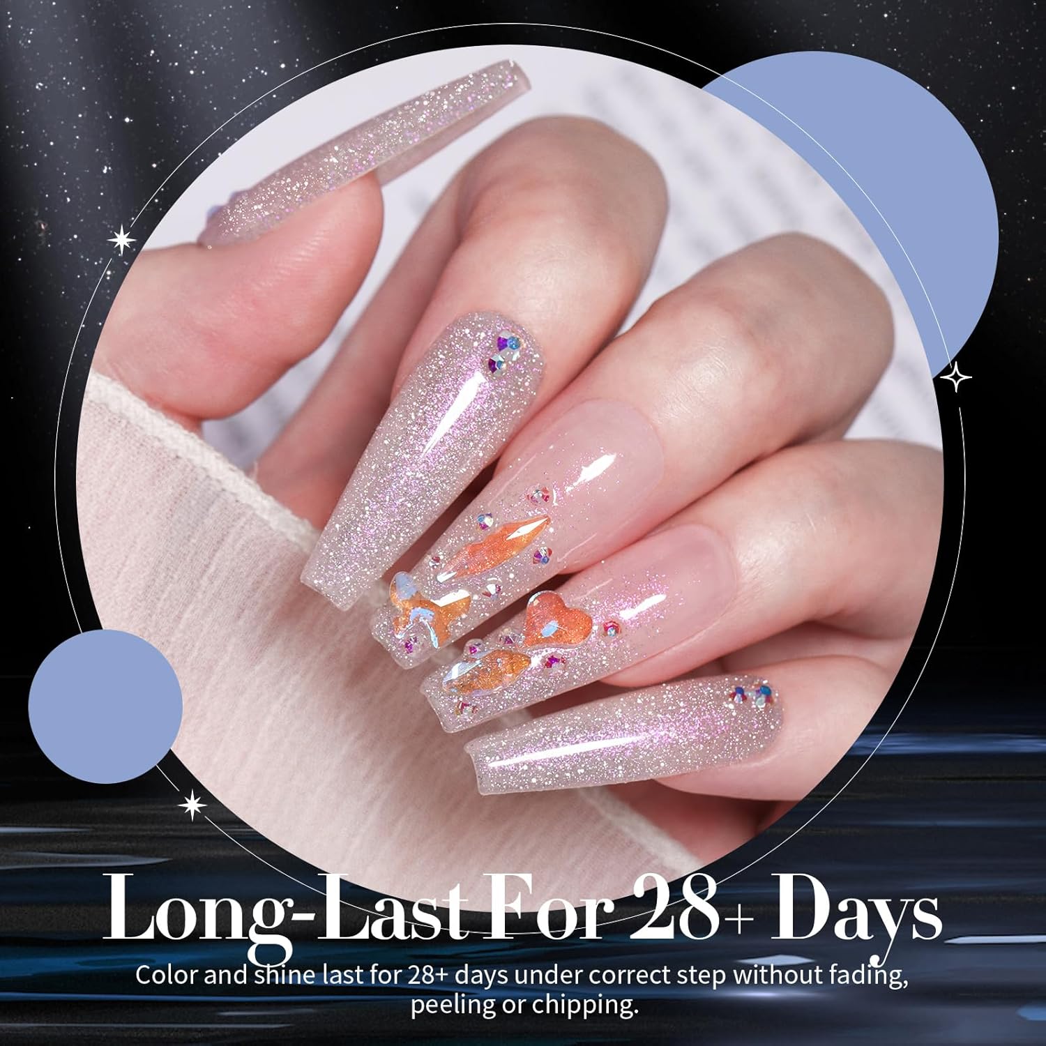 - EASY APPLICATION AND GOOD TENACITY: The series of reflective gel nail polish set is long lasting for 21+ days with perfect shine under proper application - With base gel top coat under the full application process.High durability and intense pigmentation makes it stay last longer and brings you brilliant shine finish.