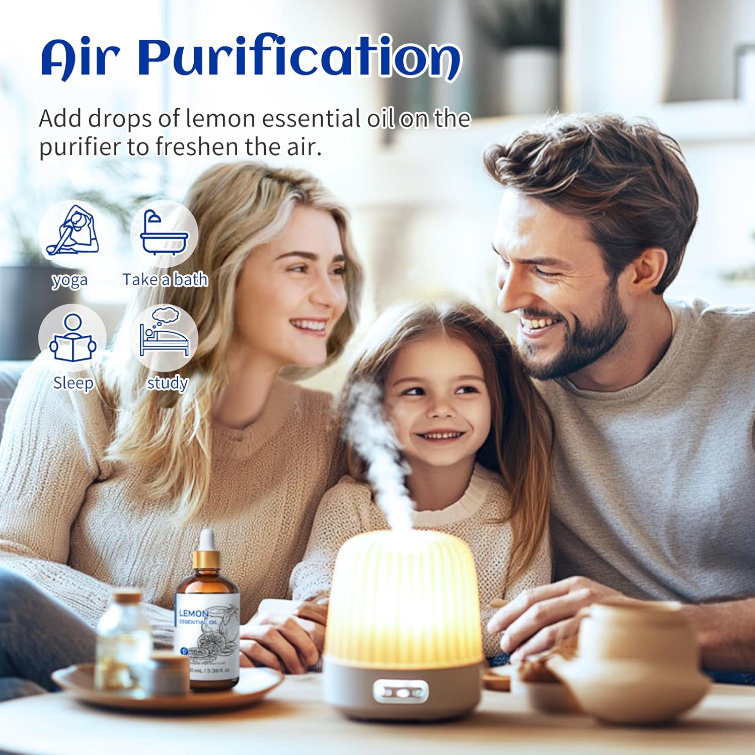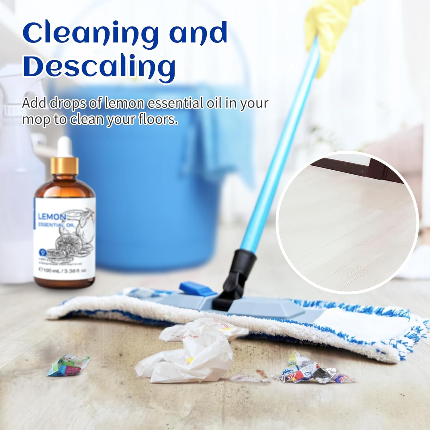 HIQILI Lemon Essential Oil, Household Cleaning, Air Purification, Skin Care, Can be Added to Cleansers, Sprays, Body Lotions Use - 3.38 Fl Oz/100ML
