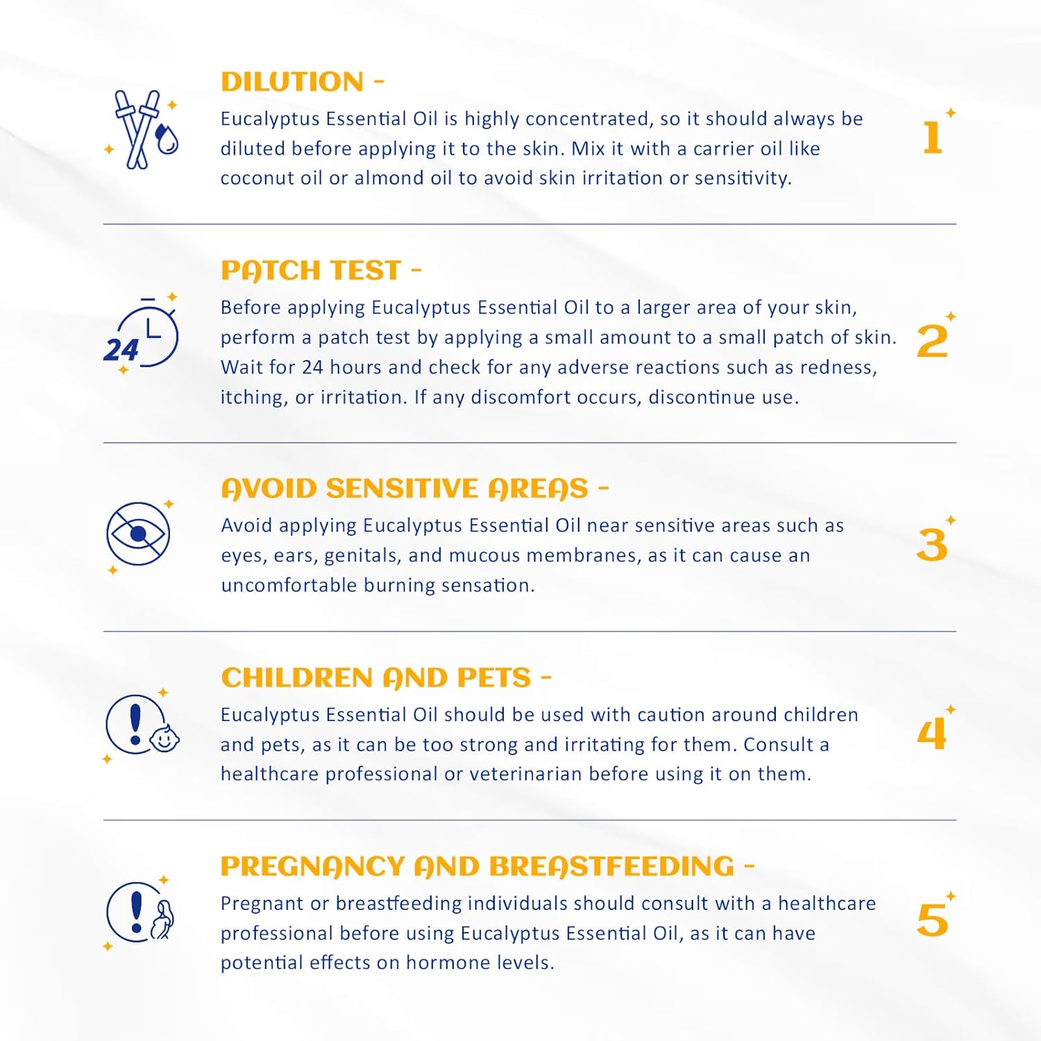 - [ 𝐂𝐞𝐫𝐭𝐢𝐟𝐢𝐞𝐝 𝐒𝐚𝐟𝐞𝐭𝐲 ] Our eucalyptus oil is distilled from the leaves of eucalyptus and is tested for purity, safety and composition by GC/MS, MSDS, COA, IFRA and more