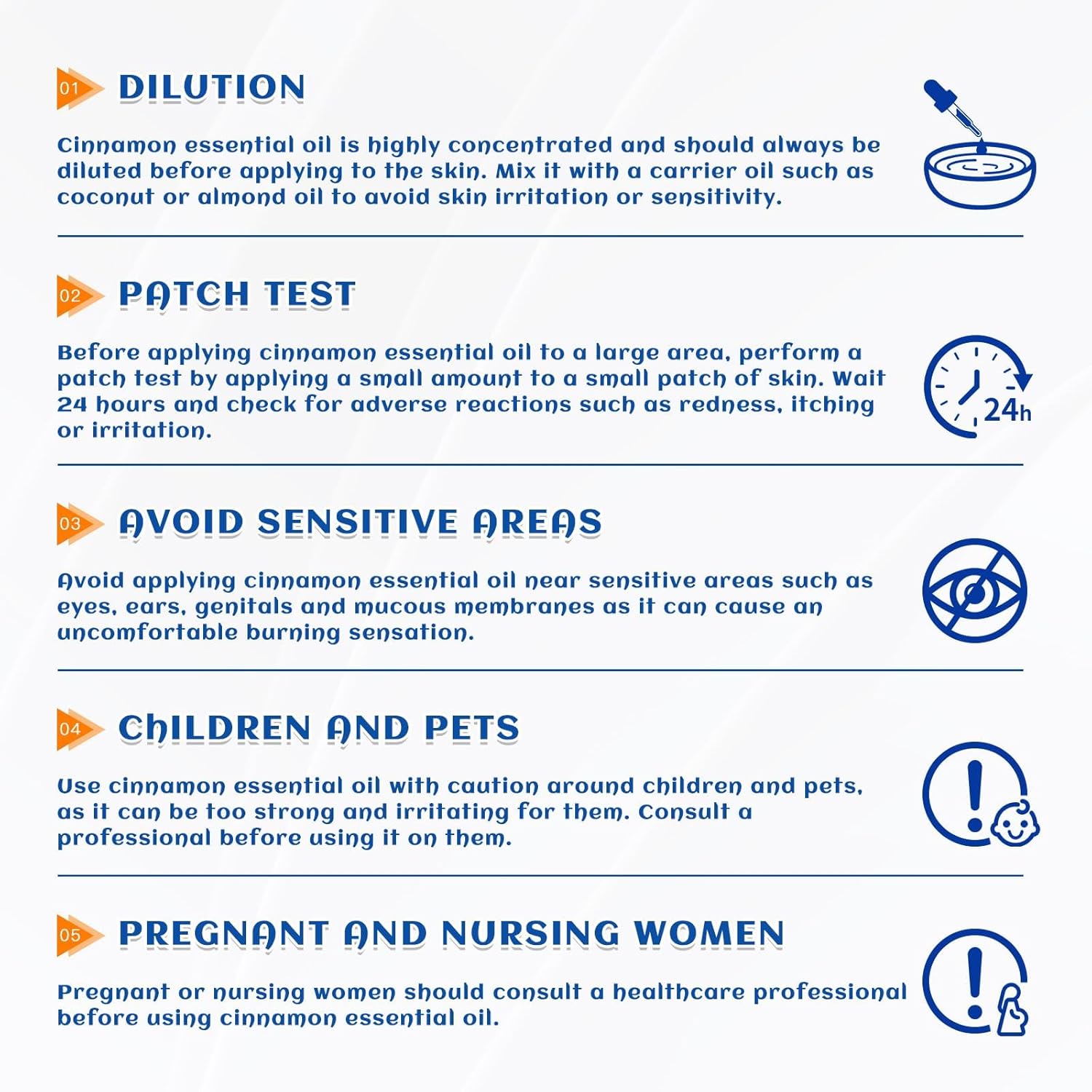 - Body Massage: Mix 1-2 drops of cinnamon essential oil with every 20 milliliters of a carrier oil (such as sweet almond oil, jojoba oil or castor oil). Take an appropriate amount of the mixture into your palm and apply it to the desired body area in a circular motion for massage, bring a comfortable experience to the body
