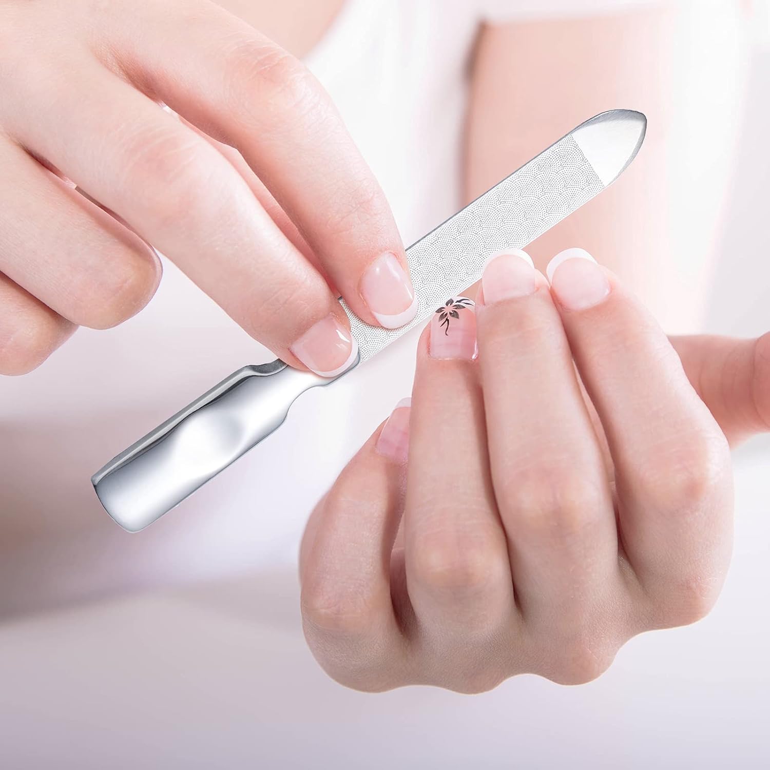 - Clever and Thoughtful: our metal nail files are designed with double sided style and anti-slip handle, one side is rough surface and the other side is fine surface, helps to polish your nail surface and file the nail edges, the handle is nonslip, safer and more thoughtful to operate