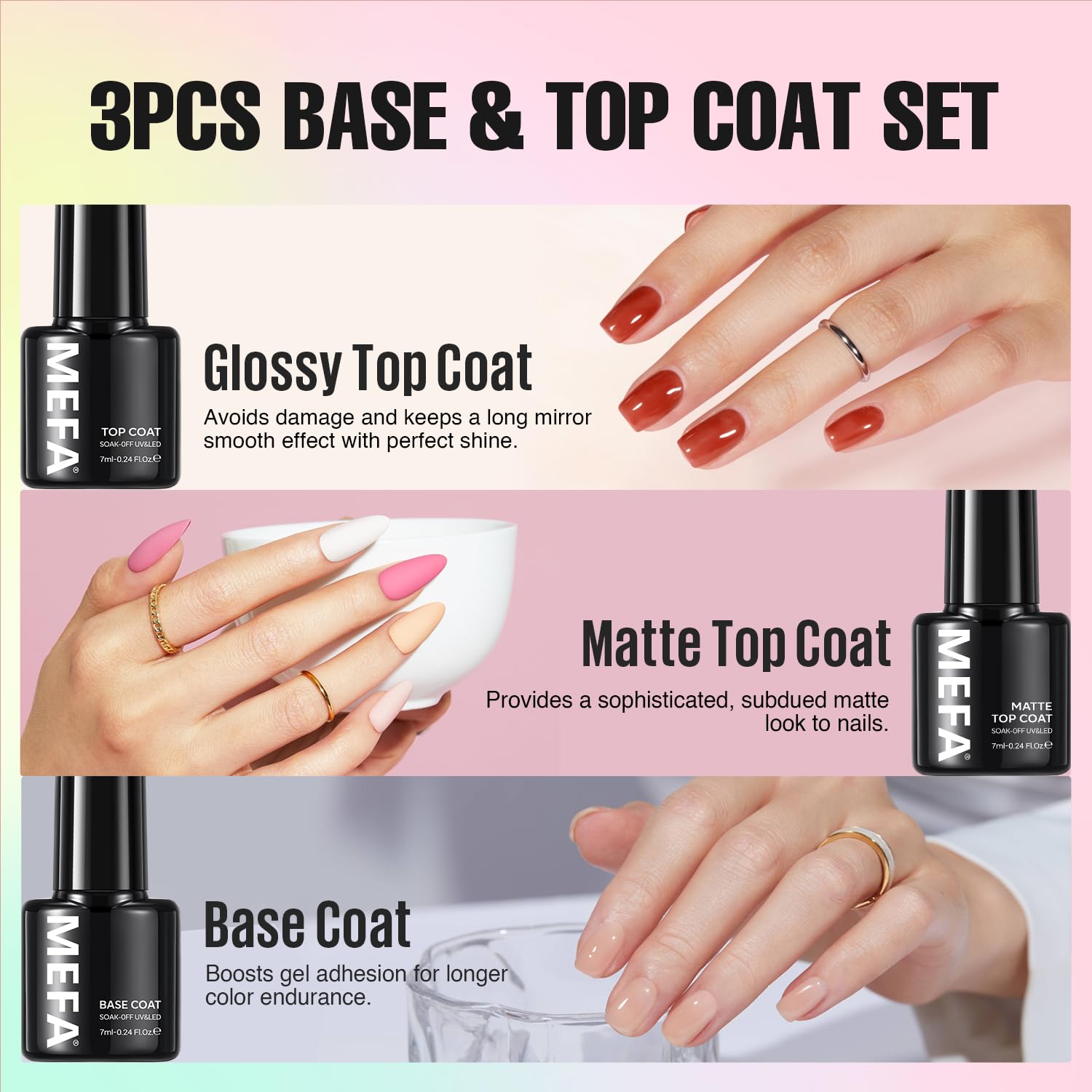 MEFA 56 Pcs Gel Nail Polish Kit with U V Light, 32 Colors Hot Pink Colorful Gel Nail Kit Glitter nail Polish Set Nail Art Decorations Manicure Tools DIY Gifts