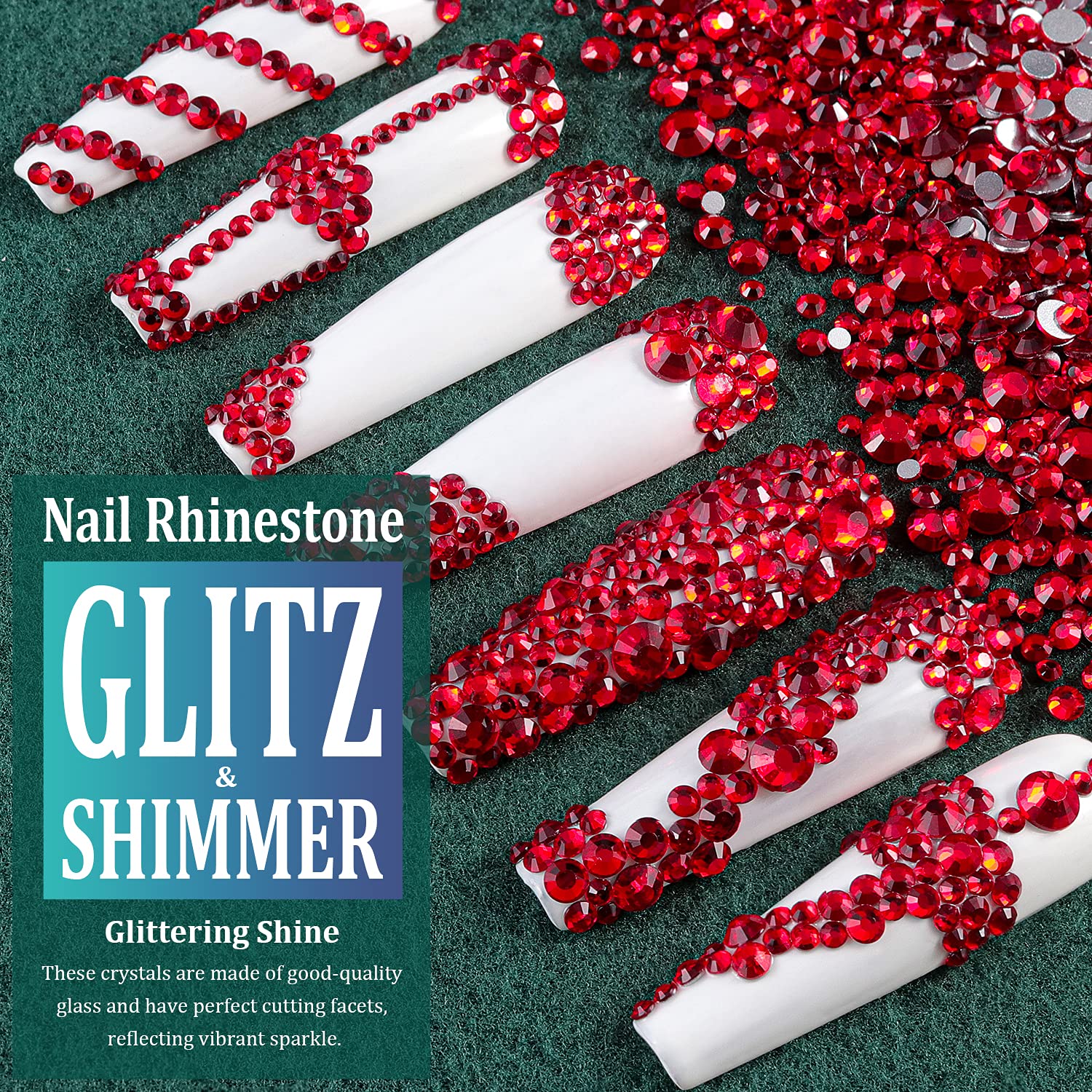 - ❤WHAT YOU WILL RECEIVE -- 1 Box of 6 Sizes Red Round Glass Nail Crystal Rhinestones Beads (Totally About 1720 PCS); 1 PCS Rhinestone Picker Pencil; 1 PCS Tweezer. The Well Equipped Rhinestone Set Is Suitable for Both Professional Nail Technician and Inexperienced Starter for Nail Art.