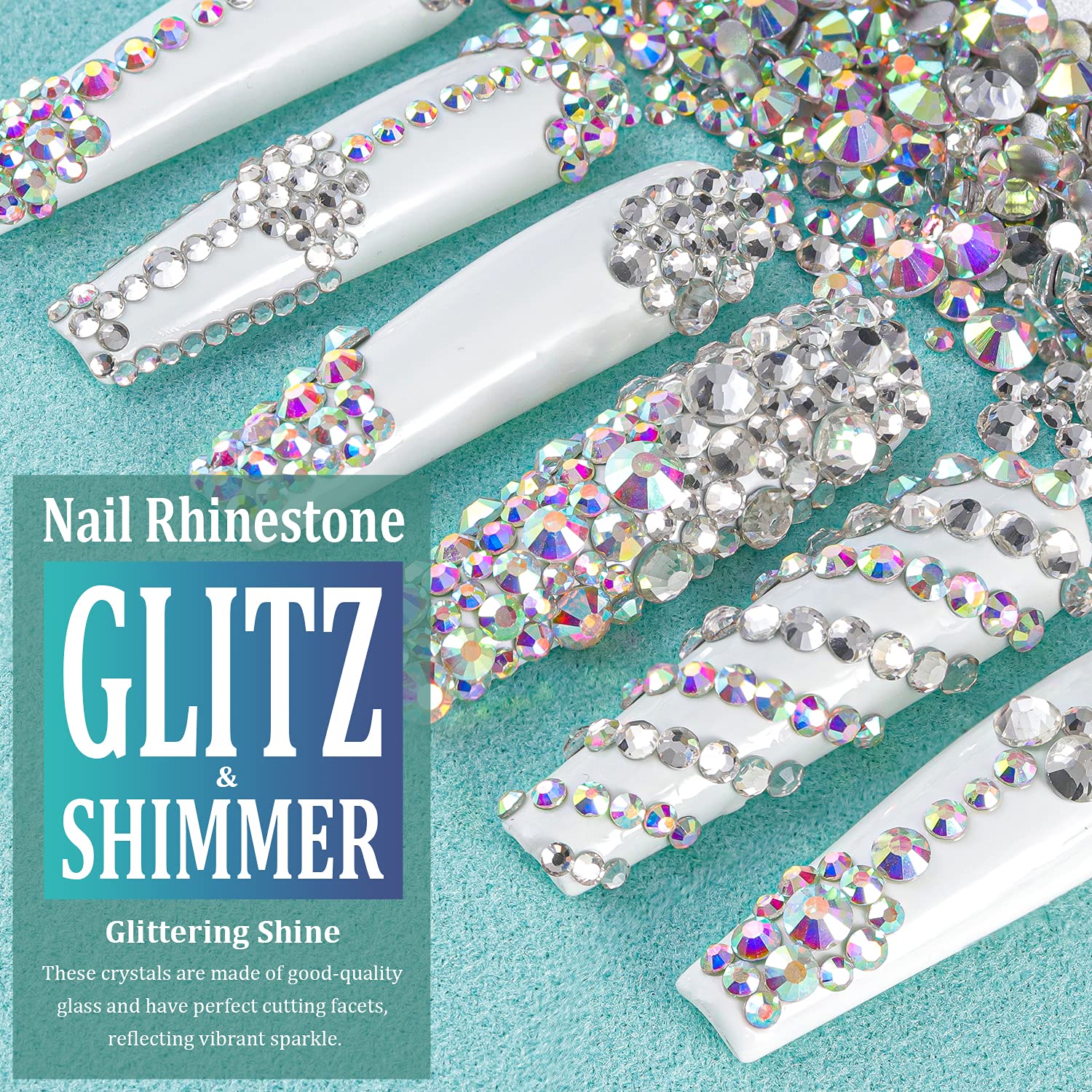 - ❤WHAT YOU WILL RECEIVE -- 1 Box of 6 Sizes Transparent White and AB Round Glass Nail Crystal Rhinestones Beads (Totally About 1720 PCS); 1 PCS Rhinestone Picker Pencil; 1 PCS Tweezer. The Well Equipped Rhinestone Set Is Suitable for Both Professional Nail Technician and Inexperienced Starter for Nail Art.