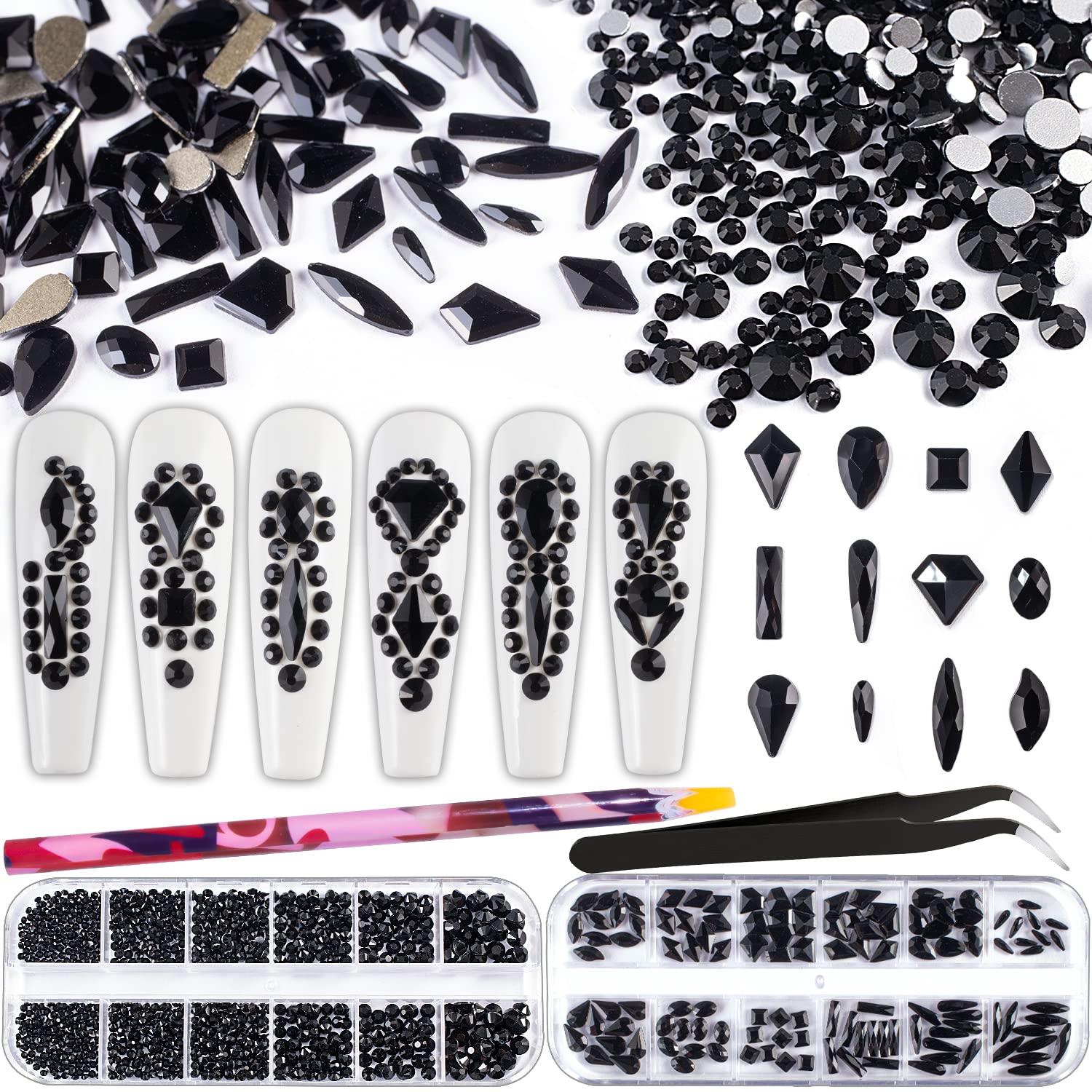 - ❤WHAT YOU WILL RECEIVE -- 1 Box of 6 Sizes Black Round Glass Nail Crystal Rhinestones Beads (Totally About 1720 PCS); 1 Box of 12 Different Shaped Styles Black Glass Stones Gem (About 120 PCS; 10 PCS for Each Shape); 1 PCS Rhinestone Picker Pencil; 1 PCS Tweezer. The Well Equipped Rhinestone Set Is Suitable for Both Professional Nail Technician and Inexperienced Starter for Nail Art.