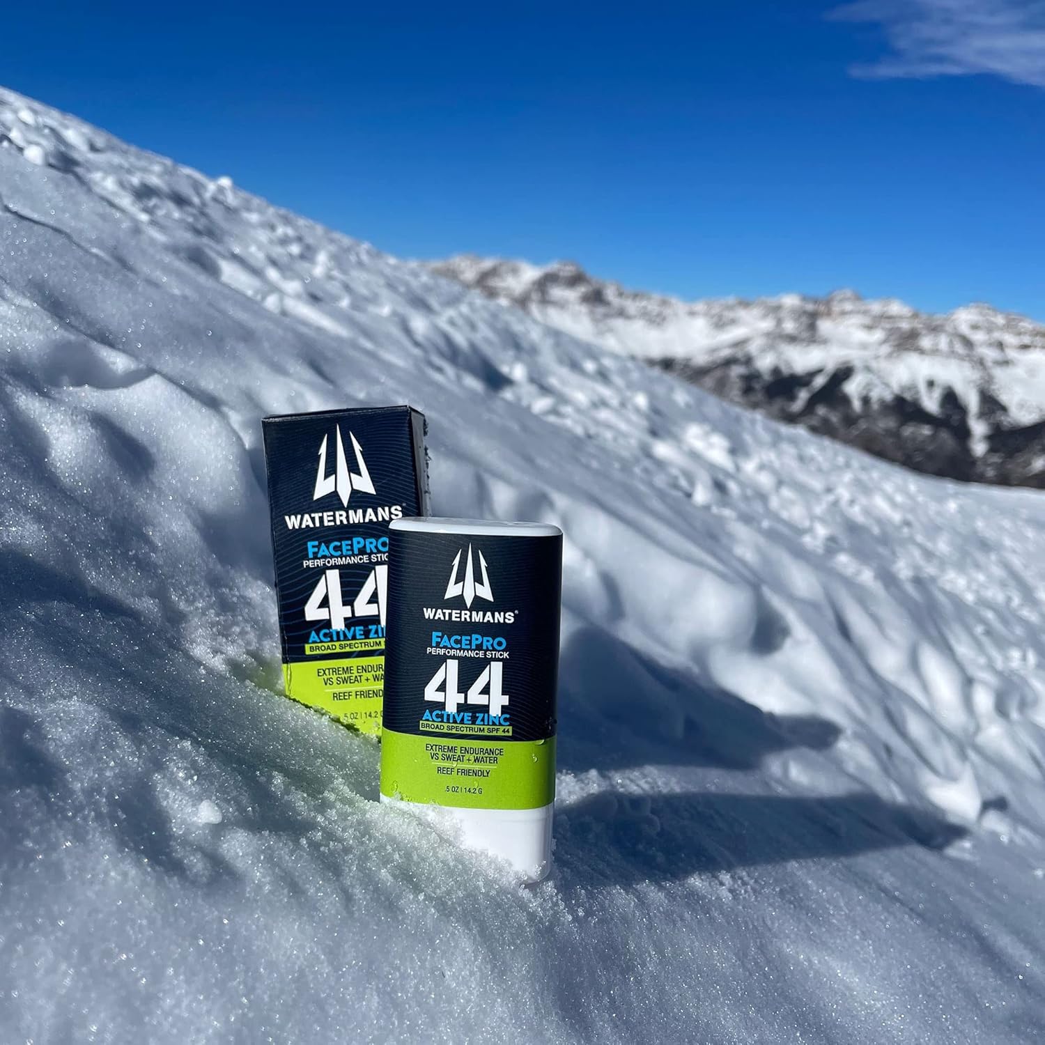 - HIGHLY WATER RESISTANT & SWEAT PROOF: Watermans MINERAL stick SPF44 is Zinc Oxide based. FacePro won’t sweat loose or run into your eyes. Non-greasy, hypoallergenic and applies evenly- with no ‘ghosting’