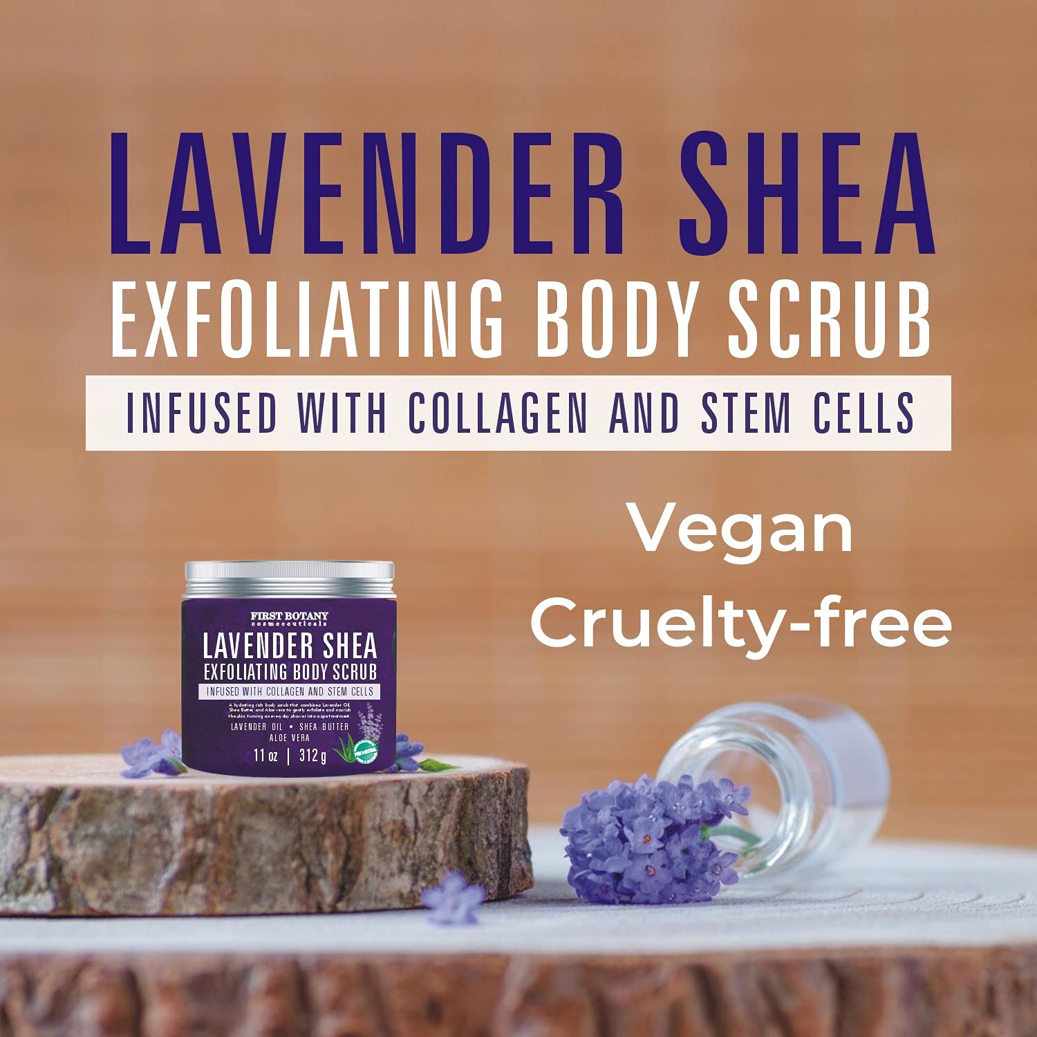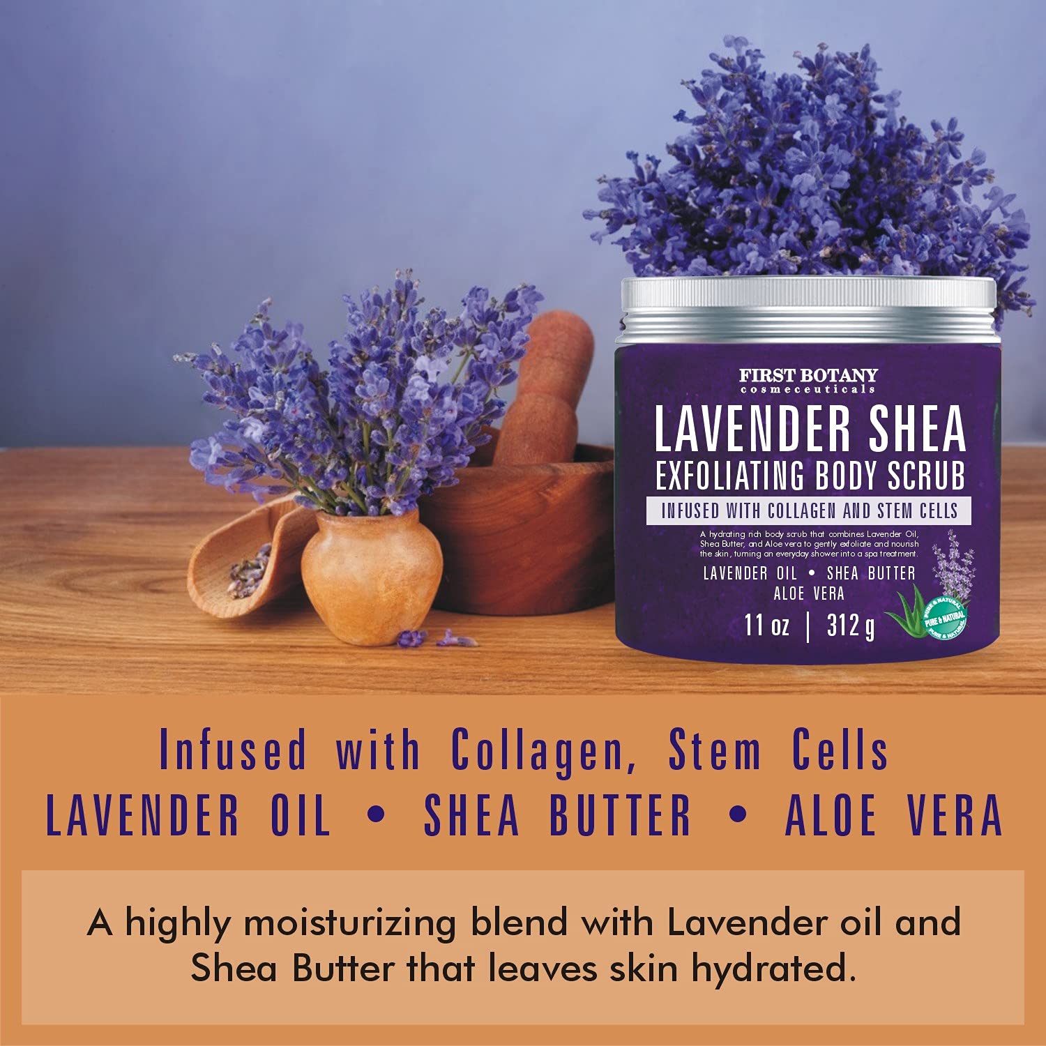 First Botany Body Scrub - Natural Exfoliating Salt Scrub & Body and Face Souffle helps with Moisturizing Skin, Acne, Cellulite, Dead Skin Scars, Wrinkles (10 fl oz, Lavender)