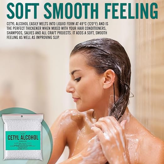 - SOFT SMOOTH FEELING: Cetyl Alcohol easily melts into liquid form at 49°C (120°F) and is the perfect thickener when mixed with your homemade cosmetics, lipsticks, body butter bars, hand lotions, hair conditioners, shampoos, salves and all craft projects. It adds a soft, smooth feeling as well as improving slip.