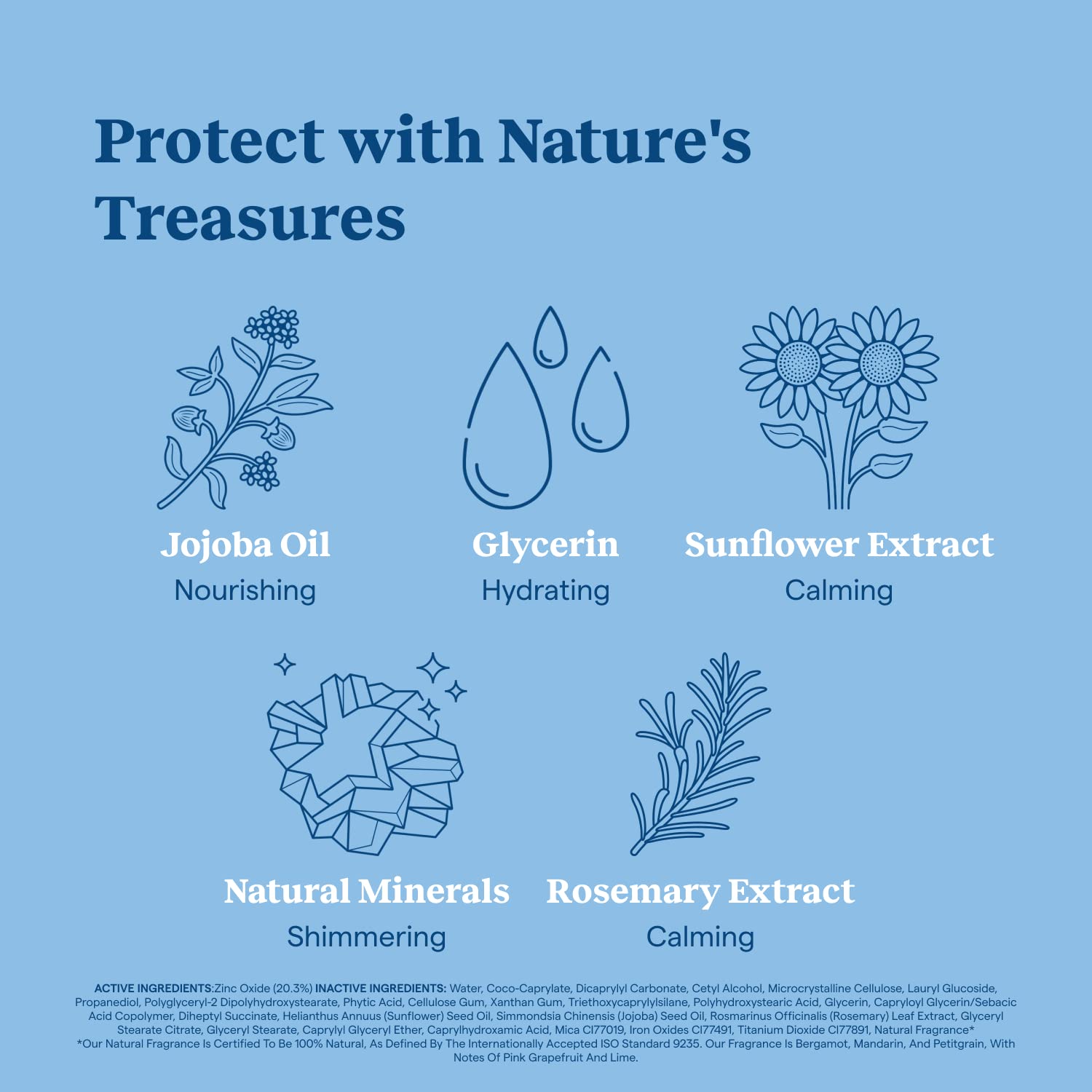 - Nourishes, hydrates and softens: Made with non-nano zinc oxide, as well as ingredients like jojoba oil, glycerin and rosemary extract, Sunglow protects, brightens, and calms your skin