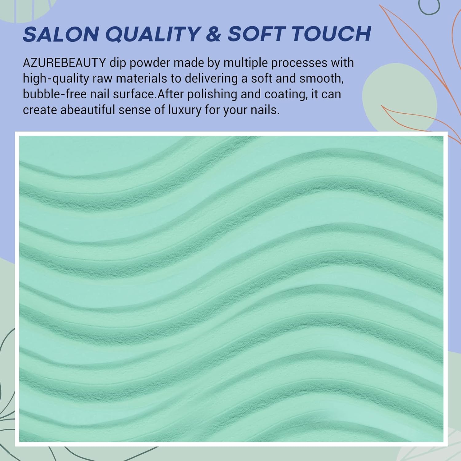 - Healthy & Nail-Friendly: AZUREBEAUTY dipping powder is made of Non-irritating ingredients, a unique healthy formula complex of rich calcium and vitamins, which is paraben & cruel free, safe & harmless & non-odor, would not damage your nail bed and available for air-dry. But please avoid prolonged contact with the skin