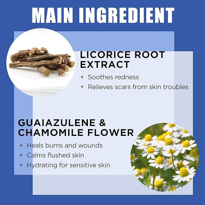- KEY INGREDIENTS FOR ALL: All of our face care products are formulated using Power Effect 100TM, a 100-hour process dedicated. Licorice root extract soothes skin and is effective on itchy skin. This unique formula with guaiazulene, chamomile flower extracts, and panthenol helps moisturize your skin and promote a balanced PH for it