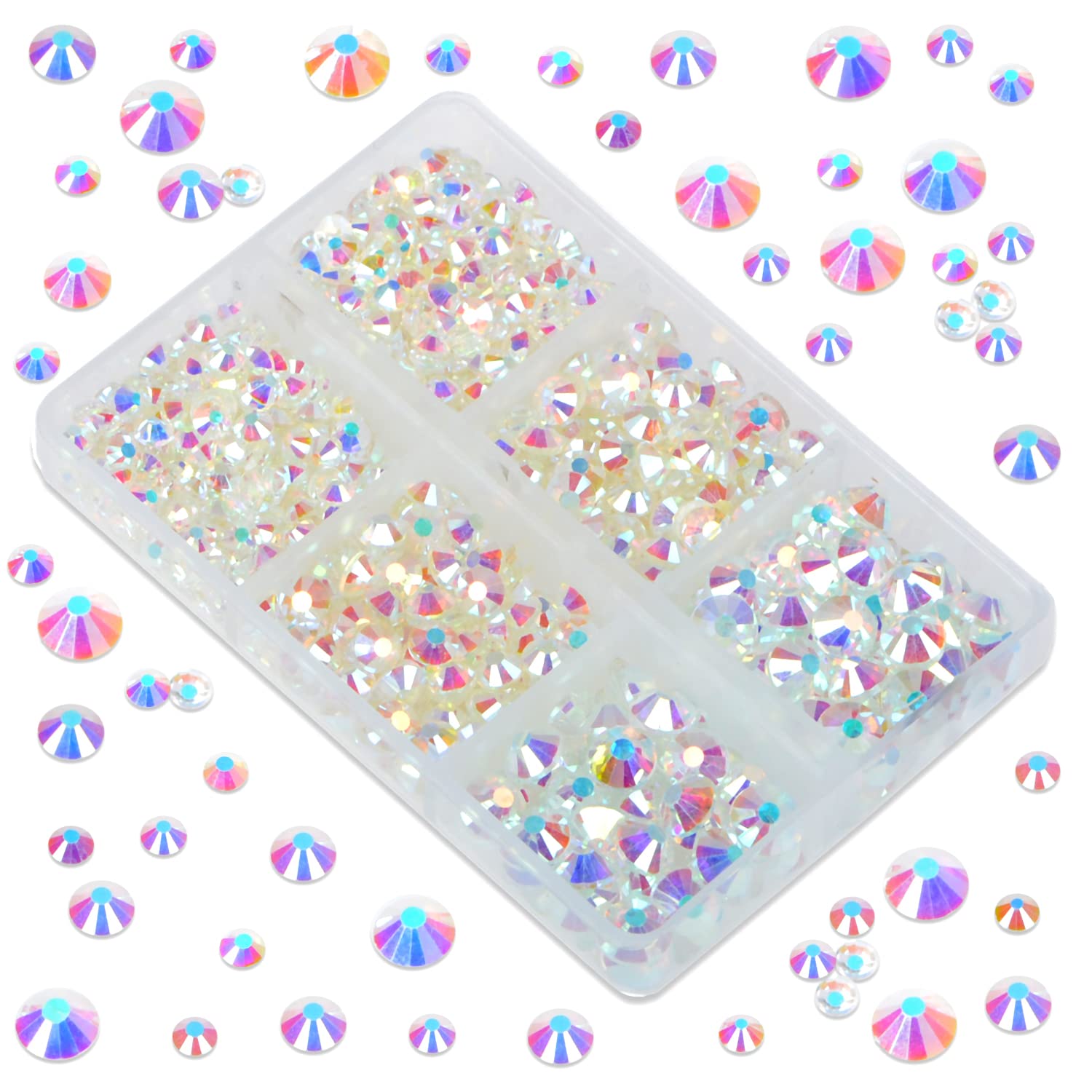 - 6 Sizes charming crystal rhinestones with storage boxes easy to carry, 1.5mm to 6mm. ss6 ss8 ss10 ss16 ss20 and ss30. Rhinestones are not hotfix and require glue to stick them, glue is not included.