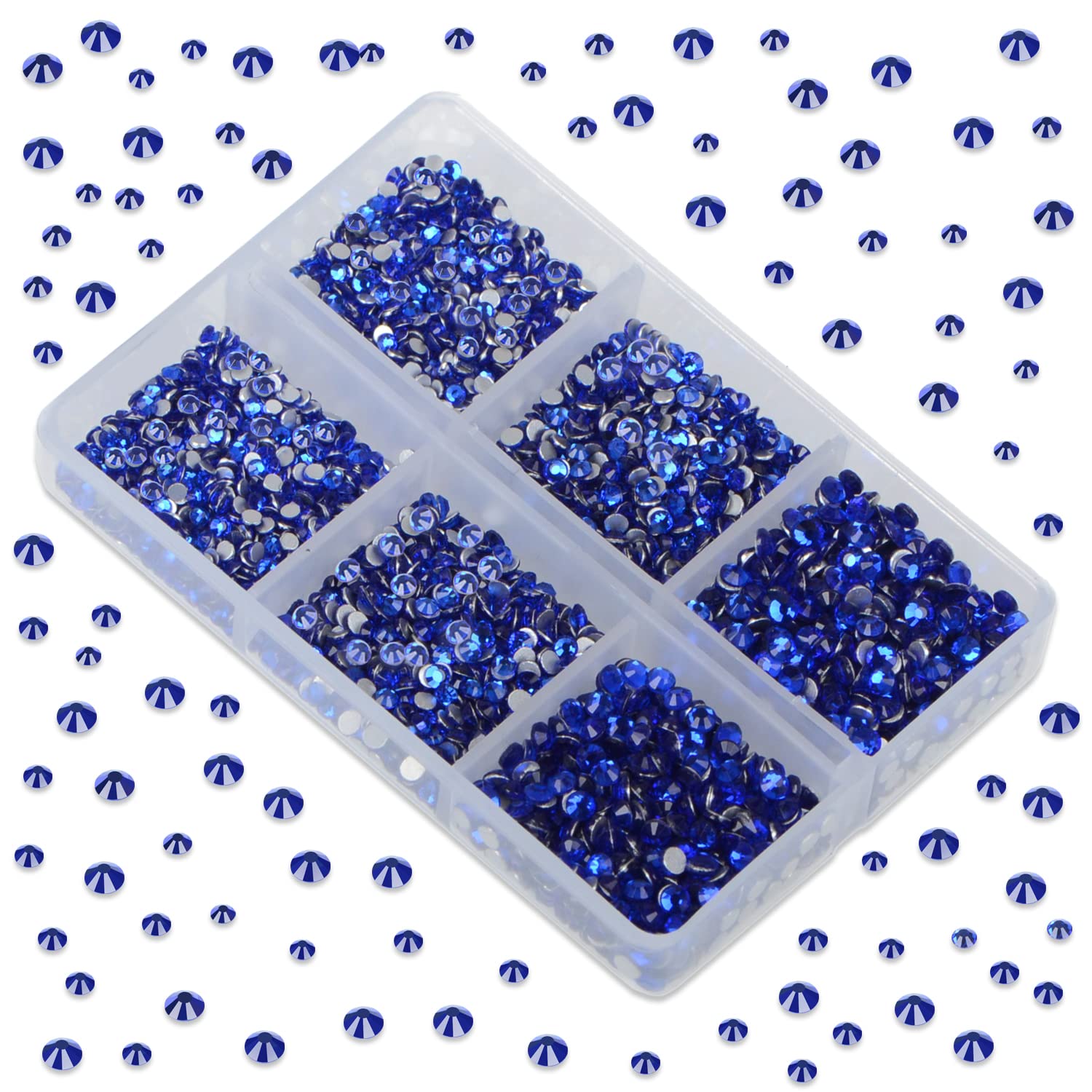 LPBeads 6000 Pieces Sapphire Non Hotfix Rhinestones 6 Sizes Round Crystal Glass Flat Back Rhinestones with Tweezers and Picking Pen for Nail Art Crafts Bags DIY