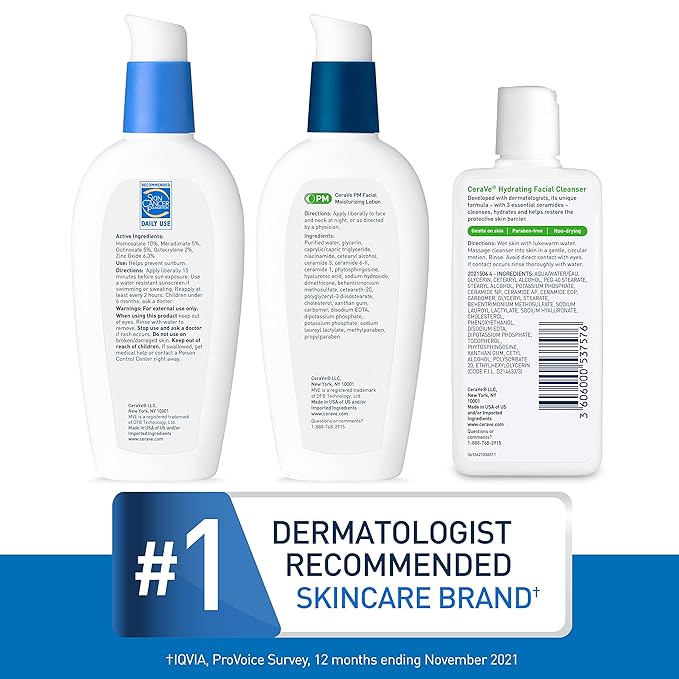 - [ OIL FREE DAY CREAM & NIGHT CREAM & HYDRATING FACE WASH FOR TRAVEL ] Contains a full size 3oz CeraVe AM Facial Moisturizing Lotion with SPF 30, a full size 3oz CeraVe PM Facial Moisturizing Lotion, and a 3oz CeraVe Hydrating Facial Cleanser