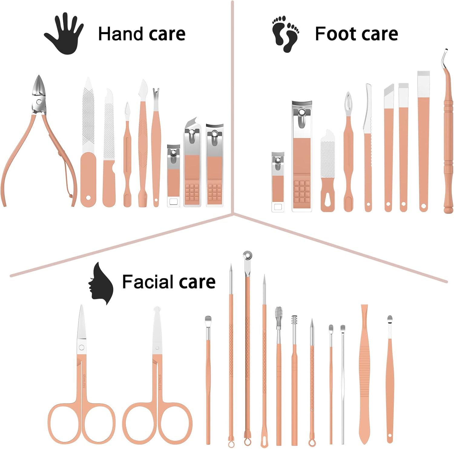 Manicure Set Personal Care, Nail Clipper Kit, Professional Nail Clipper Pedicure Set, Nail Tools with Luxurious Travel Case, Gifts for Men Women Family Friend, 31 Pieces (Pink)